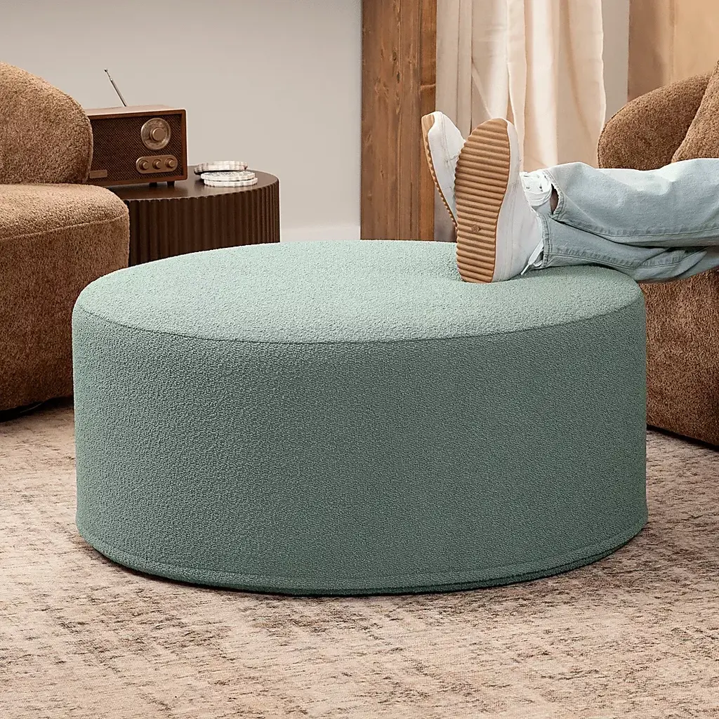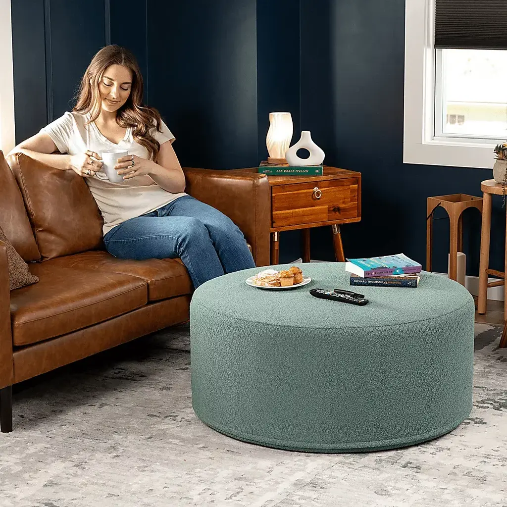 Elevate your style with the versatile Bevina II Ottoman, a safe and functional centerpiece for modern living. Standing at the perfect coffee table height of 16 inches, this multifunctional ottoman is part bench, part coffee table, and part ottoman. Handcrafted from sturdy, solid, furniture-grade foam with no hard edges, it is designed to keep kids and adults safe during daily use. Perfect for drinks, notebooks, and games, it effortlessly doubles as a footrest, extra seating, or a stylish coffee table centerpiece. Its chic design seamlessly integrates into any living space while providing peace of mind for families. The removable, machine-washable boucle cover and easy-to-clean faux leather option ensure practicality without compromising style. Cozy yet chic, the ottoman is the ultimate companion for refined relaxation and family-friendly living.