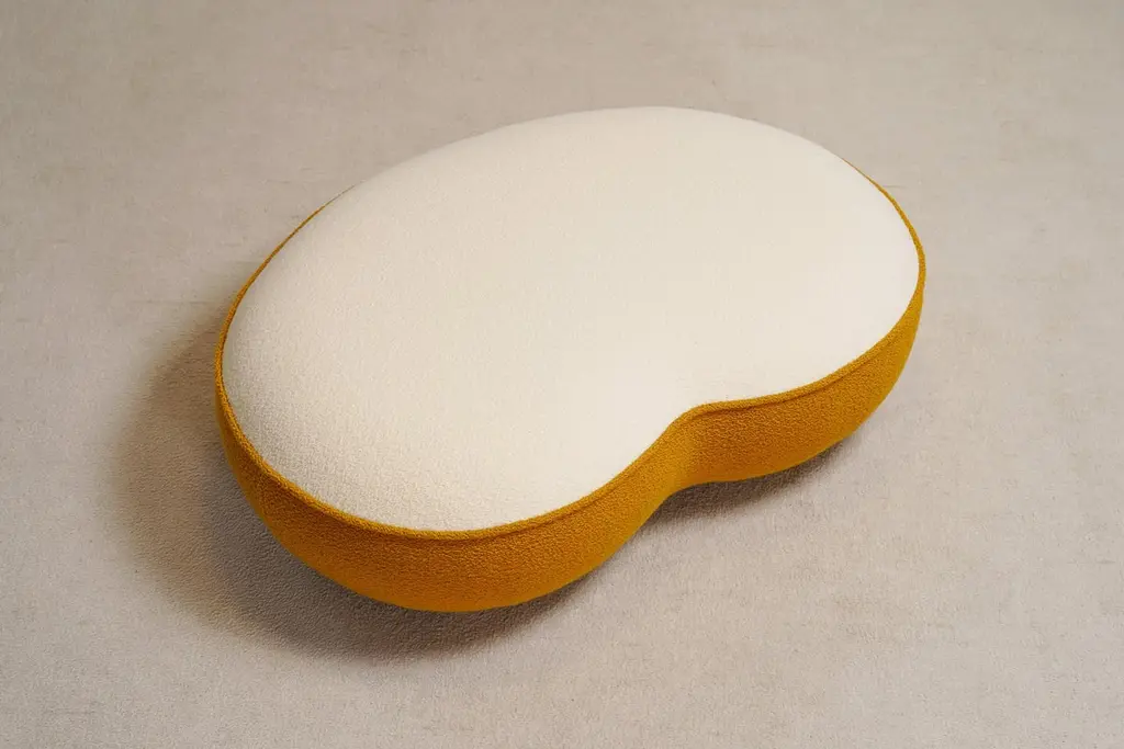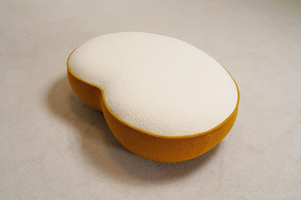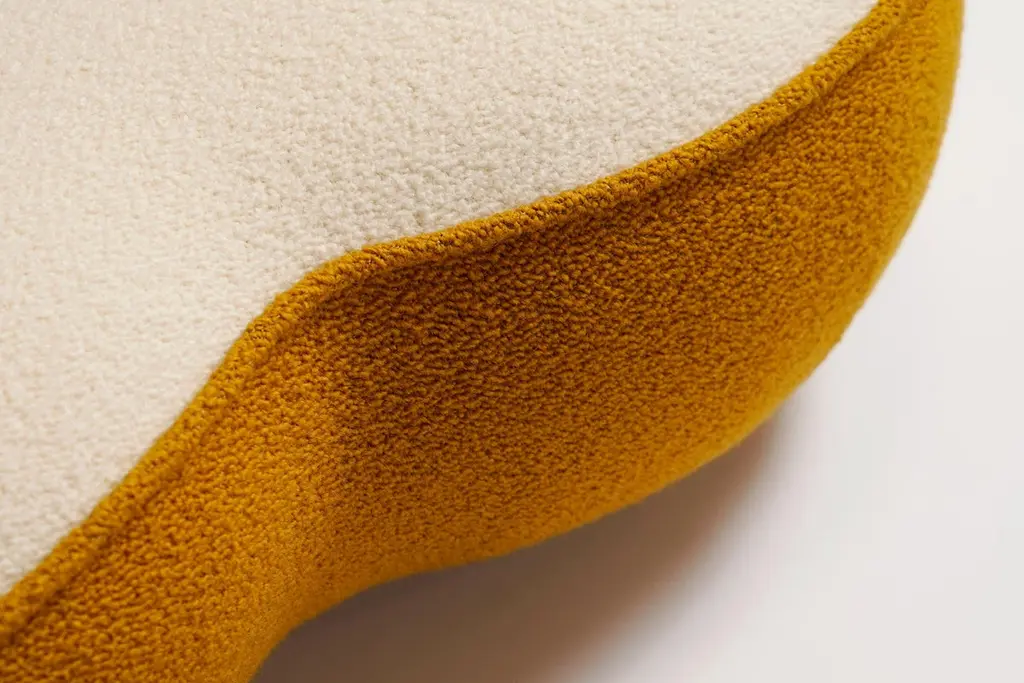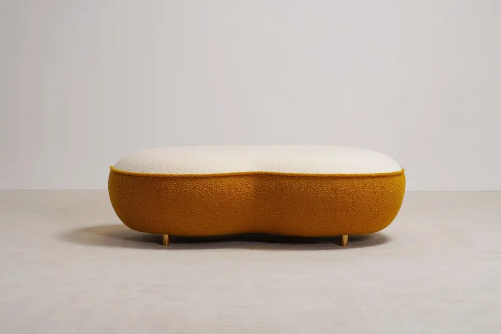 Billy Ottoman by Proisy Studio. Billy is an elegant and refined curved Ottoman or Pouf designed by Proisy Studio. This piece is a part of a collection named "Modern Cowboy" that includes a whole set of armchairs, lounge chairs, stools, benches and sofas. Each piece is thought, designed and fully hand-crafted in France using high-quality materials and in a wide range of fabrics. Materials:Upholstery on solid beech wood frame.Polished & varnished Brass feet.Wool Bouclé fabric from the French House Nobilis.Dimensions :Width: 53,15 in (135 cm)Height: 16.53 in (42 cm)Seat Height : 16.53 in (42 cm)Depth : 39,37 in (100 cm)Weight : 52 lbs (23,5 KG)Additional photos and videos available on demand.Worldwide Express deliveries by air freight are available on all our items.