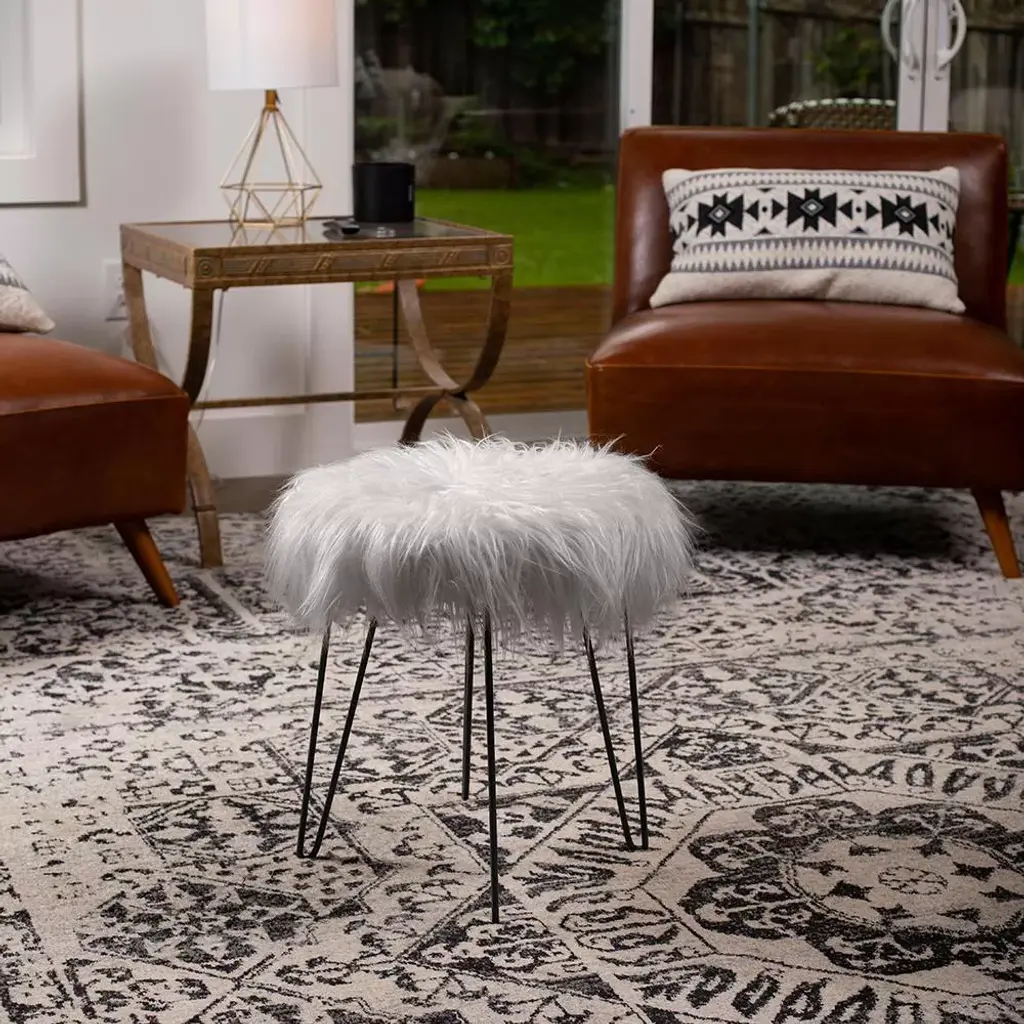 The BirdRock Home Round Faux Fur Ottoman is the perfect addition to your living room, bedroom or bathroom! Pair with your favorite couch or chair to make them even more comfortable while you read, watch tv, play games, visit, or nap! It also works great for bathroom or bedroom vanities. The beautiful faux fur design adds a luxurious look to your home while providing a functional piece of furniture. It's the perfect solution to add extra seating. The lightweight design allows you to easily move the footstool whenever needed. The footrest is also great seating for kids who often love being near the floor playing! They also provide a great spot for kids to sit while playing video games, watching tv or reading. Once they are done using them easily move them into a closet or in the corner of the room!
