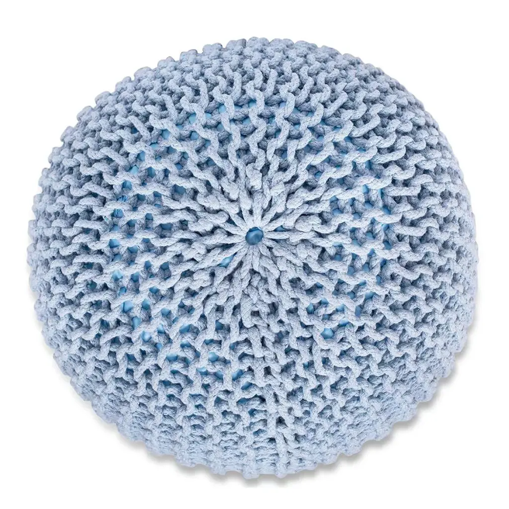 Birdrock Home Round Pouf Foot Stool Ottoman -Soft Blue