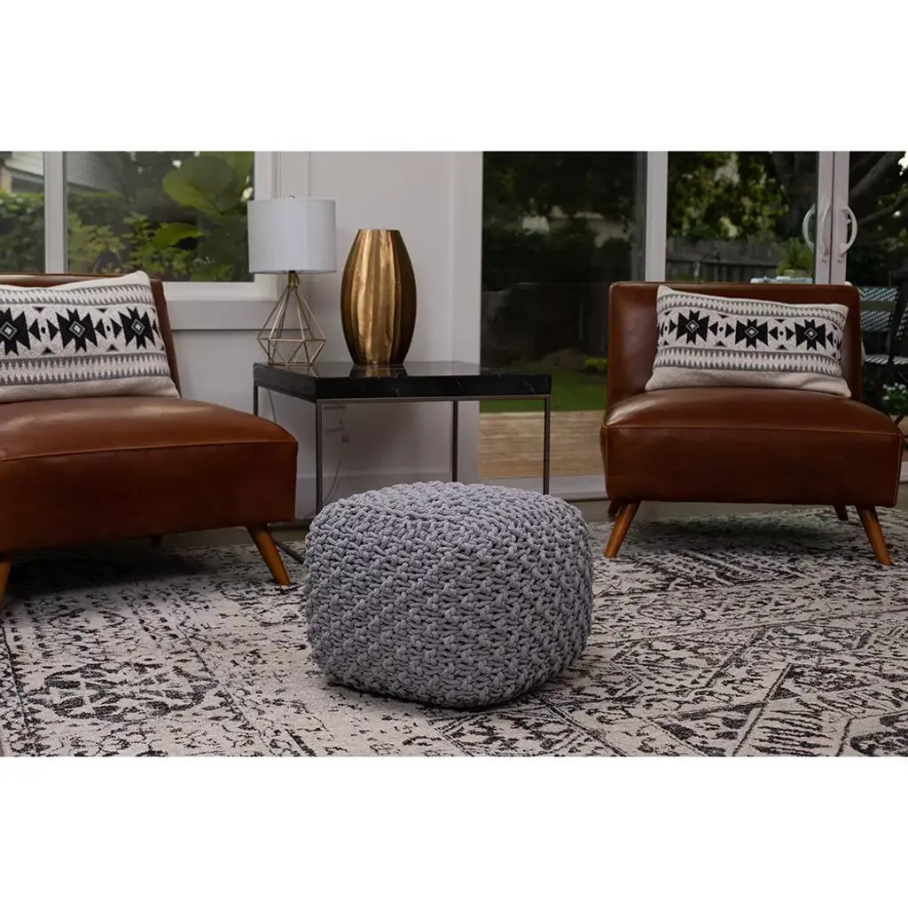 The BirdRock Home Knitted Pouf is the perfect addition to your living room, bedroom or kids room! Pair with your favorite couch or chair to make them even more comfortable while you read, watch tv, play games, visit, or nap! The beautiful hand-woven design adds a Moroccan Inspired vibe to your home while providing a functional piece of furniture. The lightweight design allows you to easily move the pouf whenever needed. The pouf is also great seating for kids who often love being near the floor playing! They also provide a great spot for kids to sit while playing video games, watching tv or reading. Once they are done using them easily move them into a closet or in the corner of the room!