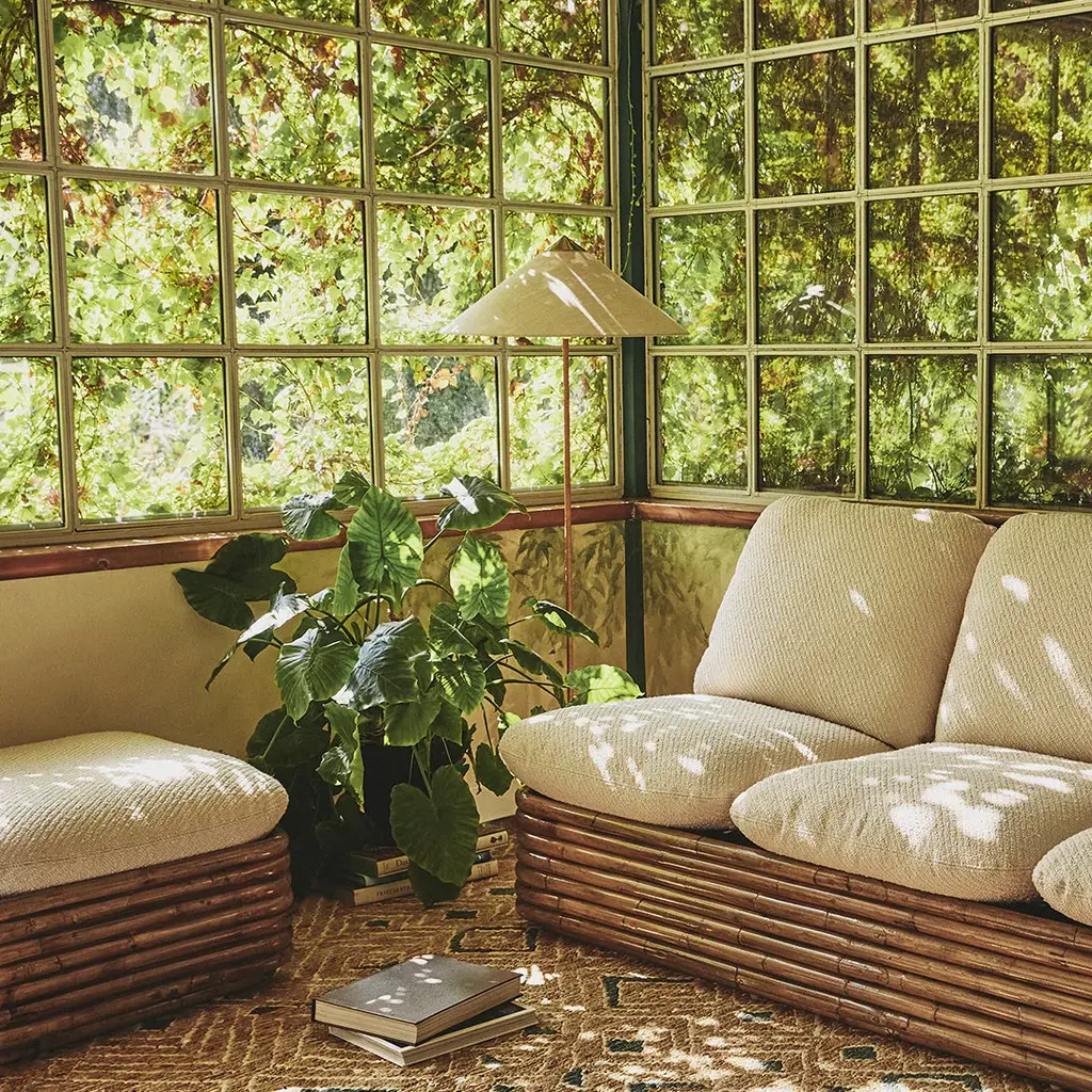 Comprising a lounge chair, three-seater sofa, ottoman and floor lamp – all crafted from rattan – the Bohemian 72 Collection embodies Crespiâ€s career-long aim to create furniture that seamlessly unites indoor and outdoor living. She never allowed curtains or screens to block the natural flow of light or air and had what her daughter has described as ‘a deep sentiment for the cosmic energy of nature.' Suitable for indoor or outdoor use but in a covered area where the ottoman will not get wet.