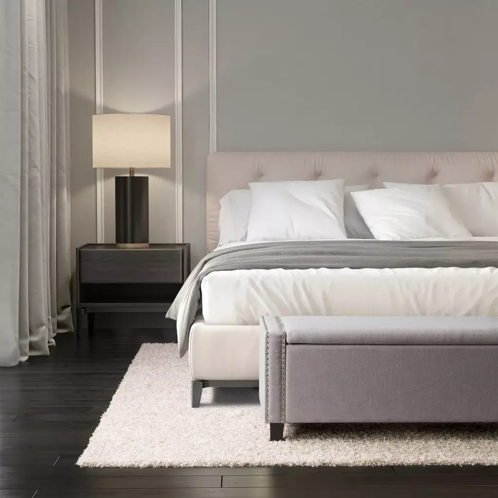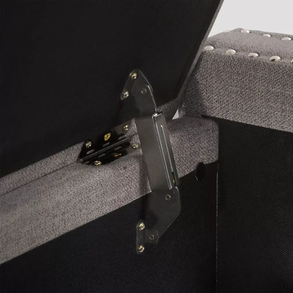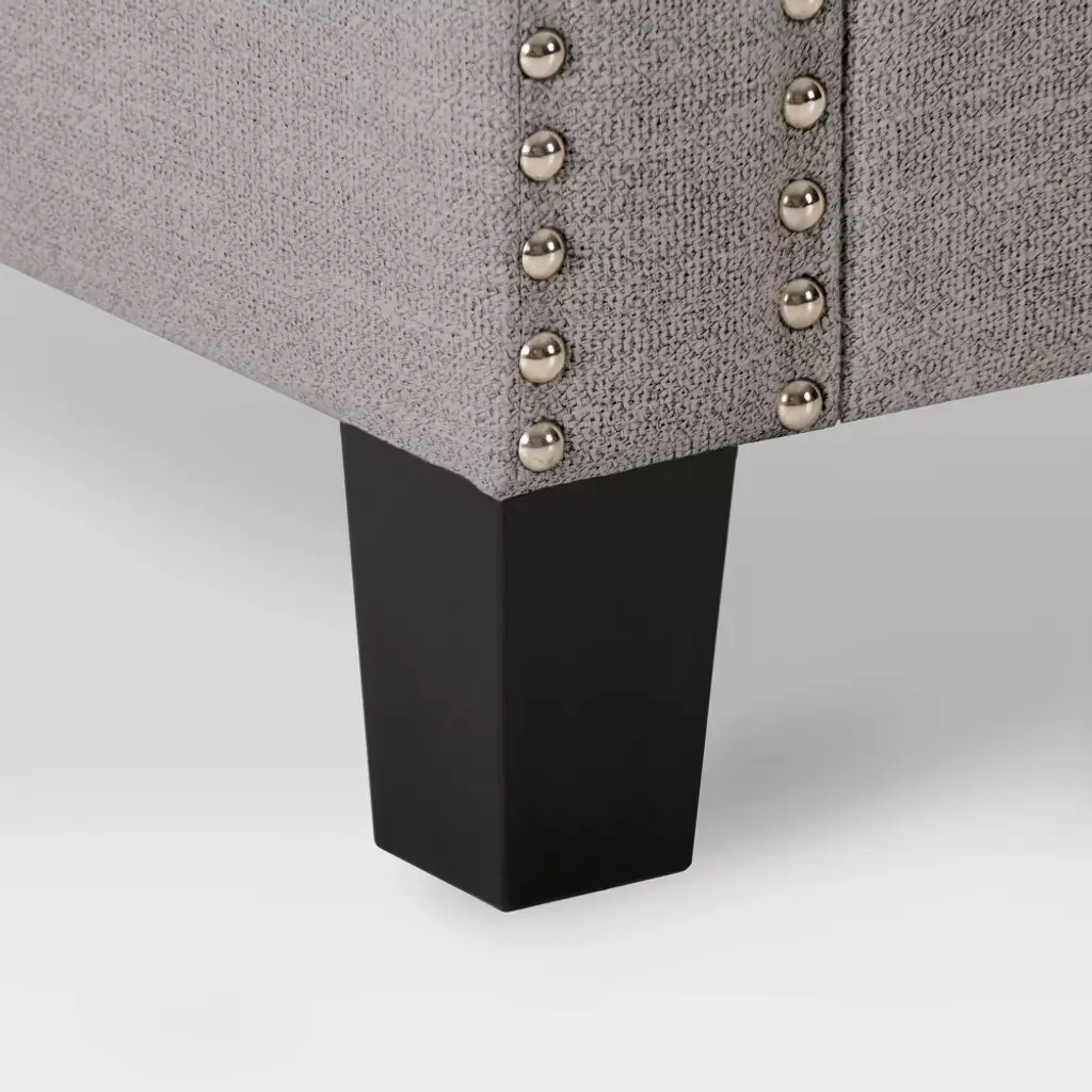 This storage ottoman is a versatile addition to any home. It offers multiple storage space options such as linens in bedrooms or board games and blankets in living rooms, the choices are endless. Wrapped in a soft polyester that's durability stands up to stains and wear and tear. Supported by dark brown legs and a nailhead trim it is as stylish as it is practical. The ottoman's classic design makes it easy to assemble and disassemble for storage or to move to the room of your choice.