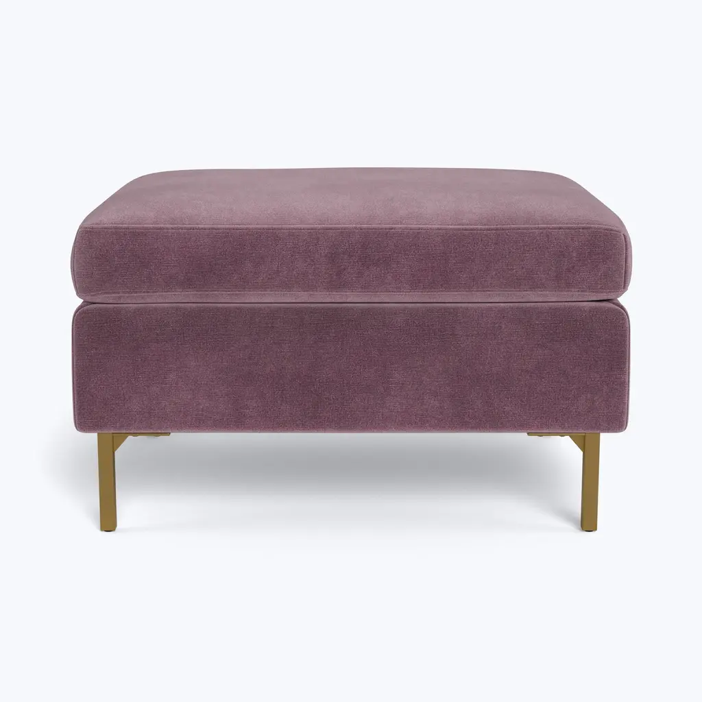 Exclusive to ABC Carpet & Home, the Boutique Ottoman is the epitome of sleek sophistication, offering a refined yet versatile addition to any space. With its clean lines and minimalist design, this piece brings a touch of understated elegance that effortlessly elevates your home décor. Whether you're looking for a stylish accent for your living room, bedroom, or entryway, the Boutique Ottoman combines form and function in a beautifully balanced way. Measuring 30" W x 17" H x 22" D, the Boutique Ottoman is thoughtfully designed to fit in a variety of spaces. Its compact size makes it ideal for smaller rooms or apartment living, while its elegant silhouette ensures it can stand out as a focal point in more spacious environments. The modern brass legs add a chic, contemporary touch, perfectly complementing the sleek lines of the ottoman and enhancing its refined appeal. The sophisticated design of the Boutique Ottoman makes it adaptable to a range of interior styles, from modern minimalism to classic elegance. This ottoman is not only about aesthetics but also functionality. Whether used as a comfortable footrest, extra seating for guests, or a chic surface for placing decorative items or a tray, the Boutique Ottoman seamlessly fits into your home’s daily life. Its versatile design makes it a practical addition to any room while maintaining an air of timeless elegance. The Boutique Ottoman offers a range of fabric options to suit your personal style. Choose from plush velvets for a luxurious feel, breathable linens for a casual, relaxed vibe, soft cottons for everyday comfort, or durable performance fabrics that can handle high-traffic areas. Each option brings its own unique texture and aesthetic to your space, allowing the Boutique Ottoman to complement the overall design of your room. Proudly made in the USA, the Boutique Ottoman is a testament to quality craftsmanship and lasting durability. Each piece is hand-crafted and delivered to your home within 8-10 weeks, providing both a personalized and seamless experience. With its perfect blend of style and functionality, the Boutique Ottoman is an essential piece for any home. Its clean design and versatile use make it a timeless addition, offering both elegance and practicality for years to come.