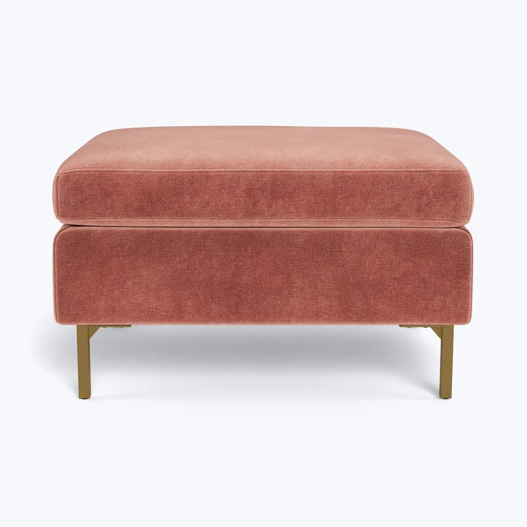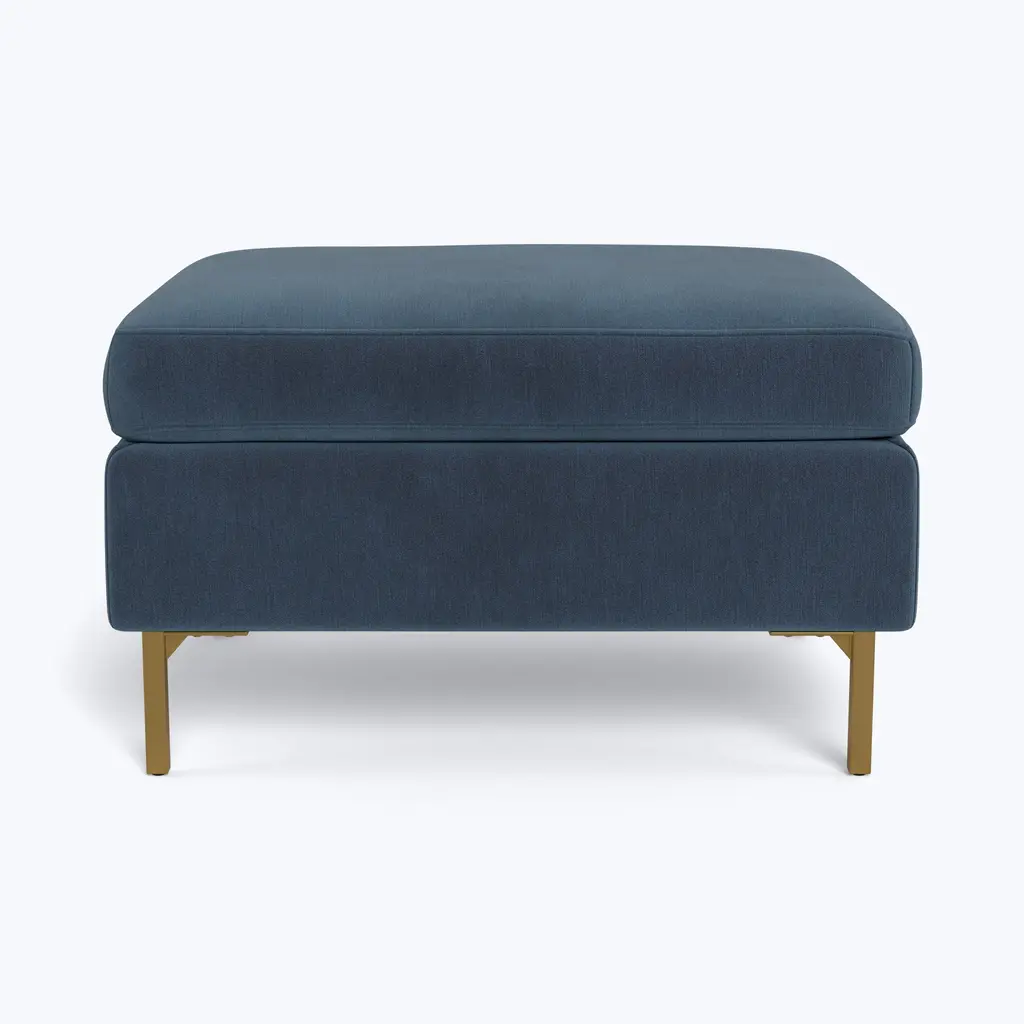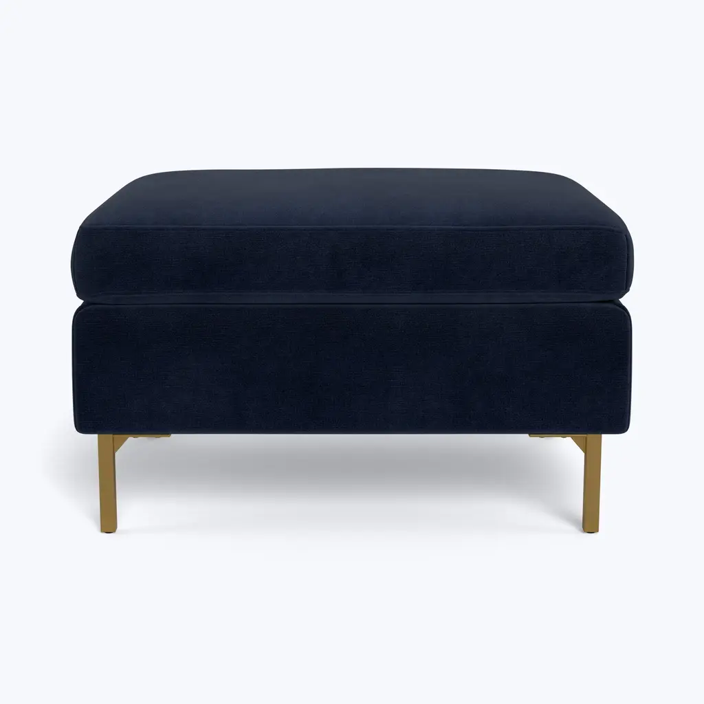 Exclusive to ABC Carpet & Home, the Boutique Ottoman is the epitome of sleek sophistication, offering a refined yet versatile addition to any space. With its clean lines and minimalist design, this piece brings a touch of understated elegance that effortlessly elevates your home décor. Whether you're looking for a stylish accent for your living room, bedroom, or entryway, the Boutique Ottoman combines form and function in a beautifully balanced way. Measuring 30" W x 17" H x 22" D, the Boutique Ottoman is thoughtfully designed to fit in a variety of spaces. Its compact size makes it ideal for smaller rooms or apartment living, while its elegant silhouette ensures it can stand out as a focal point in more spacious environments. The modern brass legs add a chic, contemporary touch, perfectly complementing the sleek lines of the ottoman and enhancing its refined appeal. The sophisticated design of the Boutique Ottoman makes it adaptable to a range of interior styles, from modern minimalism to classic elegance. This ottoman is not only about aesthetics but also functionality. Whether used as a comfortable footrest, extra seating for guests, or a chic surface for placing decorative items or a tray, the Boutique Ottoman seamlessly fits into your home’s daily life. Its versatile design makes it a practical addition to any room while maintaining an air of timeless elegance. The Boutique Ottoman offers a range of fabric options to suit your personal style. Choose from plush velvets for a luxurious feel, breathable linens for a casual, relaxed vibe, soft cottons for everyday comfort, or durable performance fabrics that can handle high-traffic areas. Each option brings its own unique texture and aesthetic to your space, allowing the Boutique Ottoman to complement the overall design of your room. Proudly made in the USA, the Boutique Ottoman is a testament to quality craftsmanship and lasting durability. Each piece is hand-crafted and delivered to your home within 8-10 weeks, providing both a personalized and seamless experience. With its perfect blend of style and functionality, the Boutique Ottoman is an essential piece for any home. Its clean design and versatile use make it a timeless addition, offering both elegance and practicality for years to come.