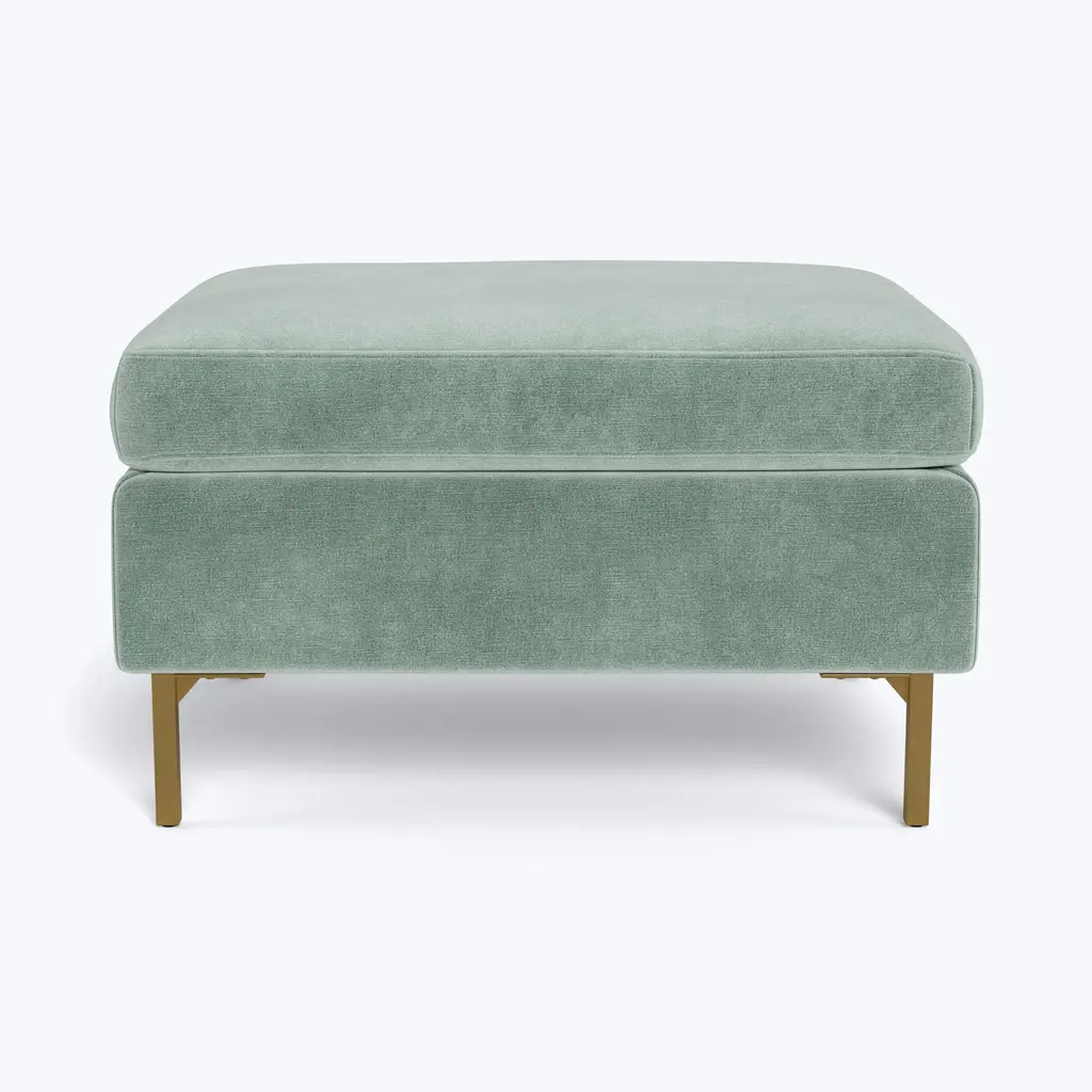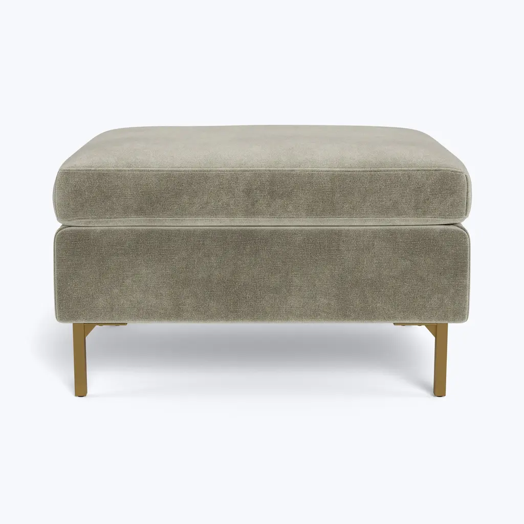 Exclusive to ABC Carpet & Home, the Boutique Ottoman is the epitome of sleek sophistication, offering a refined yet versatile addition to any space. With its clean lines and minimalist design, this piece brings a touch of understated elegance that effortlessly elevates your home décor. Whether you're looking for a stylish accent for your living room, bedroom, or entryway, the Boutique Ottoman combines form and function in a beautifully balanced way. Measuring 30" W x 17" H x 22" D, the Boutique Ottoman is thoughtfully designed to fit in a variety of spaces. Its compact size makes it ideal for smaller rooms or apartment living, while its elegant silhouette ensures it can stand out as a focal point in more spacious environments. The modern brass legs add a chic, contemporary touch, perfectly complementing the sleek lines of the ottoman and enhancing its refined appeal. The sophisticated design of the Boutique Ottoman makes it adaptable to a range of interior styles, from modern minimalism to classic elegance. This ottoman is not only about aesthetics but also functionality. Whether used as a comfortable footrest, extra seating for guests, or a chic surface for placing decorative items or a tray, the Boutique Ottoman seamlessly fits into your home’s daily life. Its versatile design makes it a practical addition to any room while maintaining an air of timeless elegance. The Boutique Ottoman offers a range of fabric options to suit your personal style. Choose from plush velvets for a luxurious feel, breathable linens for a casual, relaxed vibe, soft cottons for everyday comfort, or durable performance fabrics that can handle high-traffic areas. Each option brings its own unique texture and aesthetic to your space, allowing the Boutique Ottoman to complement the overall design of your room. Proudly made in the USA, the Boutique Ottoman is a testament to quality craftsmanship and lasting durability. Each piece is hand-crafted and delivered to your home within 8-10 weeks, providing both a personalized and seamless experience. With its perfect blend of style and functionality, the Boutique Ottoman is an essential piece for any home. Its clean design and versatile use make it a timeless addition, offering both elegance and practicality for years to come.