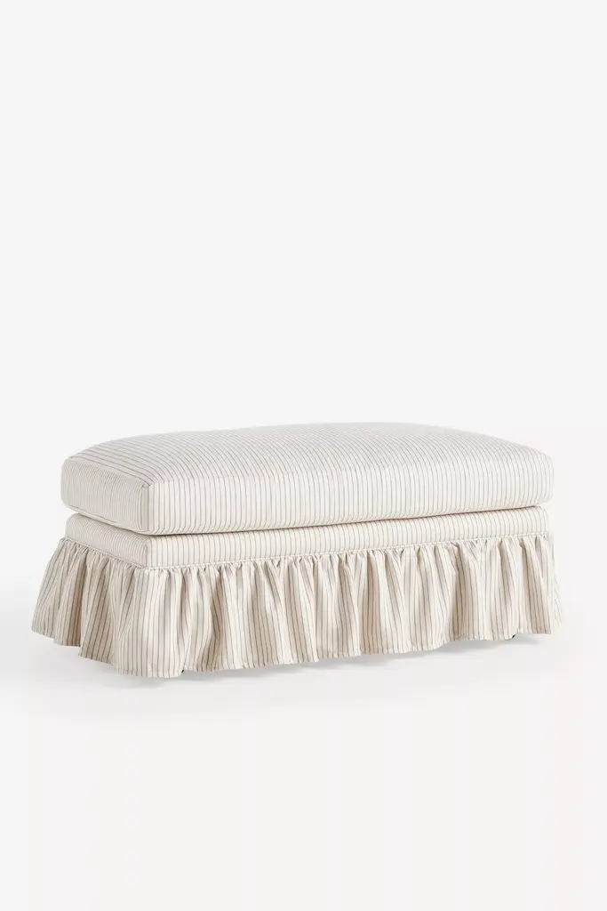 The Bowen Ruffle Ottoman features a ruffled skirt with playful pleats and a cozy silhouette, adding a dash of personality to any living space. For ordering assistance and more, please [contact us](https://www.anthropologie.com/help/contact-us#contact-us-section-2). For aesthetic advice and tips to help decorate your space, enjoy our complimentary [home styling services](https://www.anthropologie.com/help/personal-styling-home-decor).