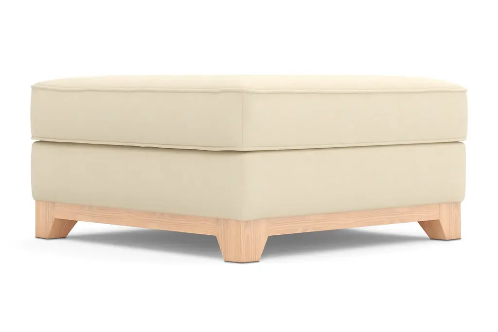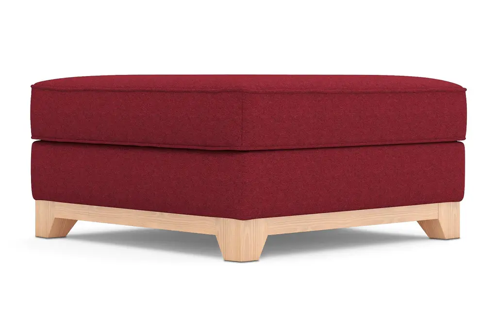 While the Brentwood Ottoman is designed to perfectly match our Brentwood Collection, pair it with your existing seating for a more eclectic vibe. Brentwood can be upholstered in a wide variety of soft, textured poly-blend fabrics, in a handful of sizes and with your choice of three wooden leg finishes. Made in the USA!