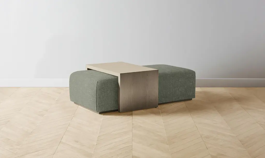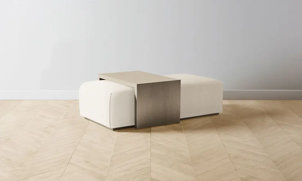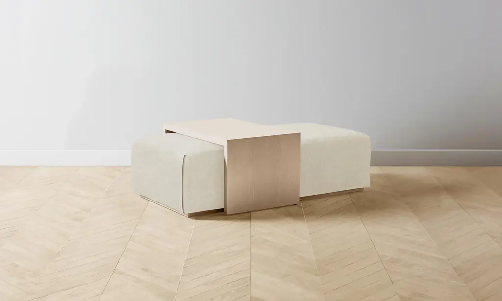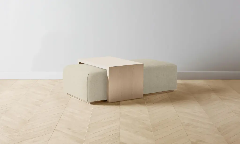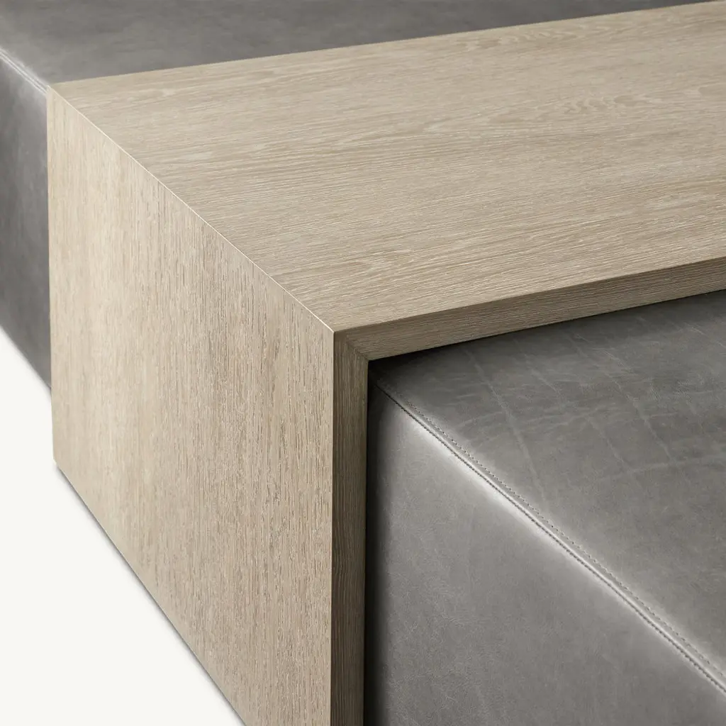 Embodying the Modernist design ethos of form follows function, our multipurpose ottoman by the Van Thiels is equal parts elegant and efficient. The seat–low profile and crisply tailored–is unadorned but for a movable oak tray to keep books and drinks close at hand. Bridging the three sides, it seamlessly merges with the sleek silhouette. ALSO AVAILABLE IN FABRIC