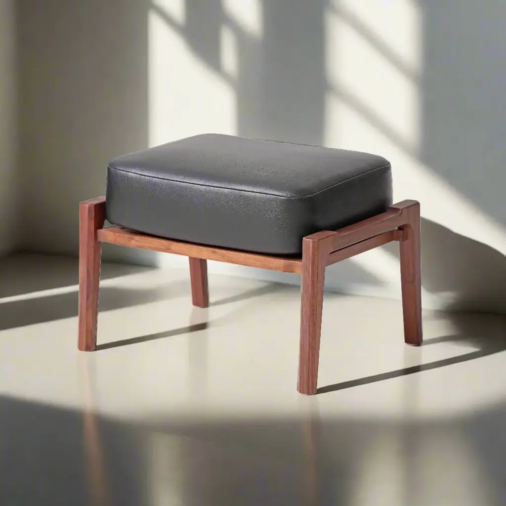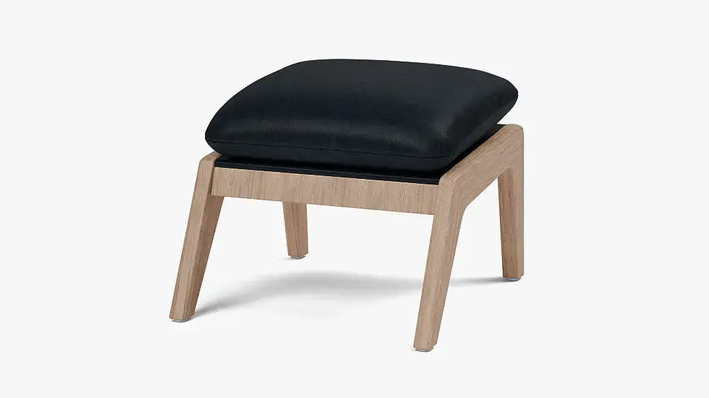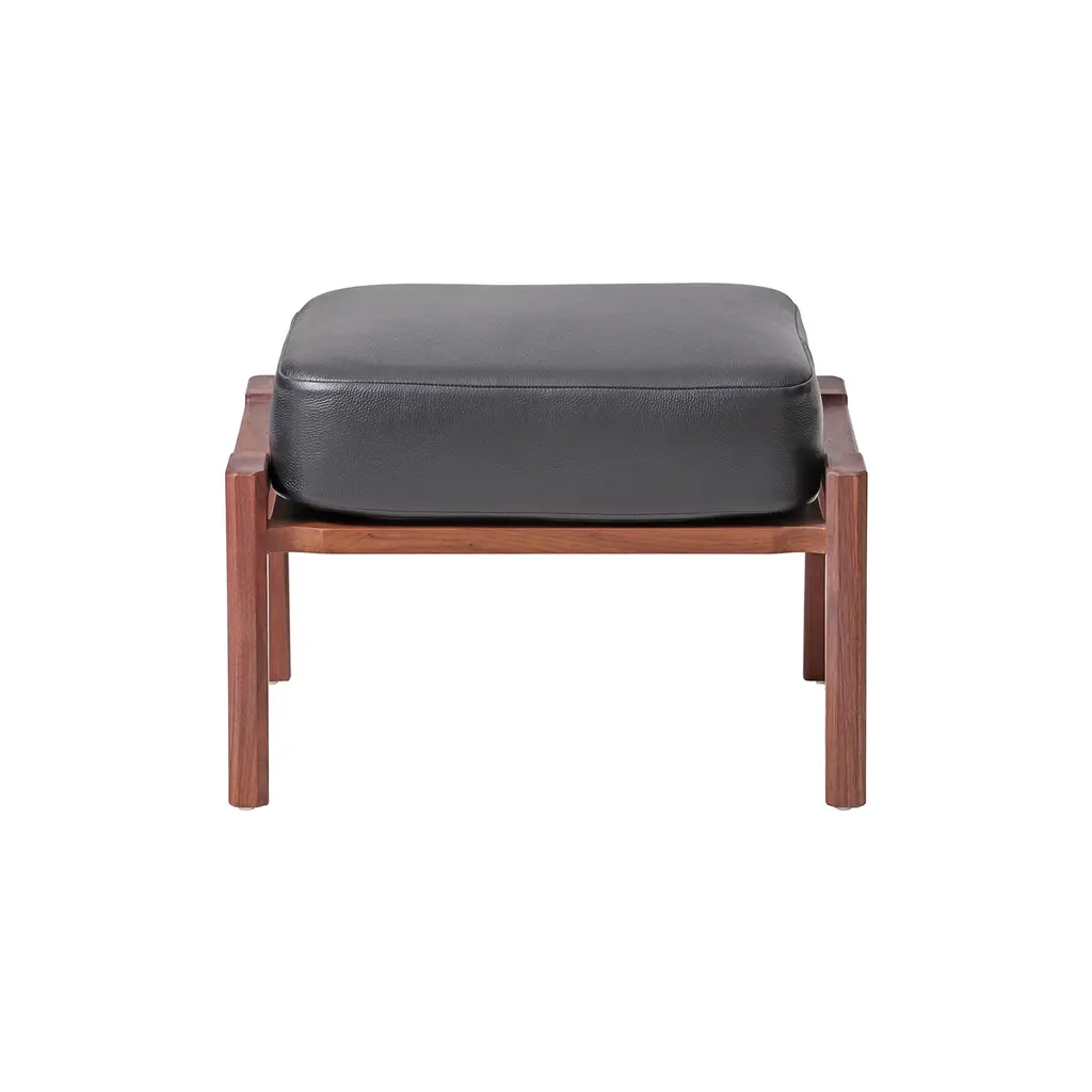Defined by generous proportions and considered detailing, this ottoman offers a supportive companion to its matching lounge chair. The solid oak or walnut frame features sculpted legs that support a generously cushioned top, available in a choice of leather or fabric upholstery. A bronze accent adds a subtle nod to the NYC subway system—the design influence behind the Brightliner collection by AvroKO, known for its hospitality-driven sensibility.