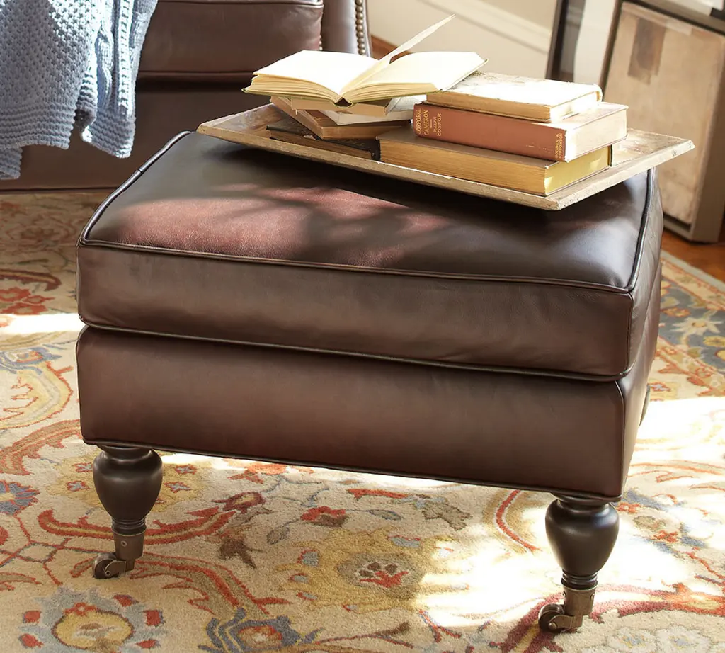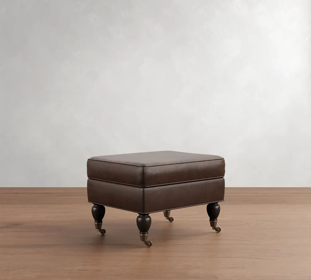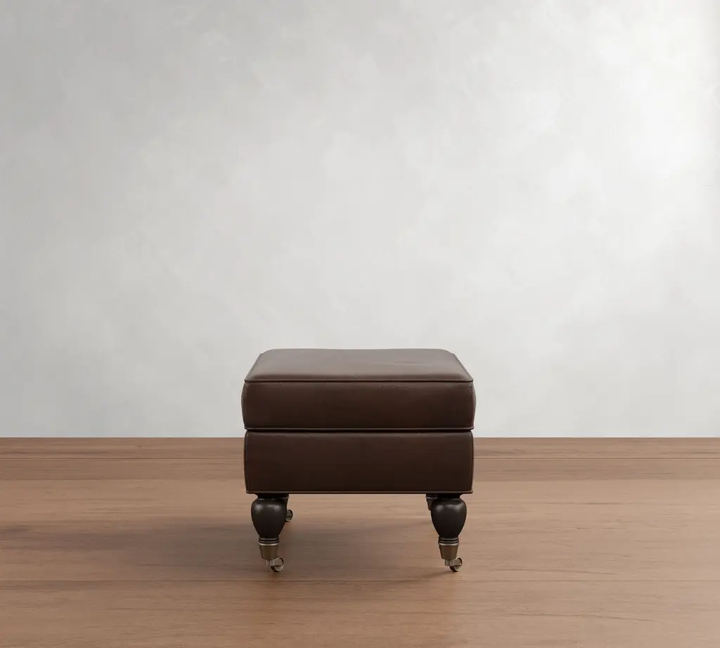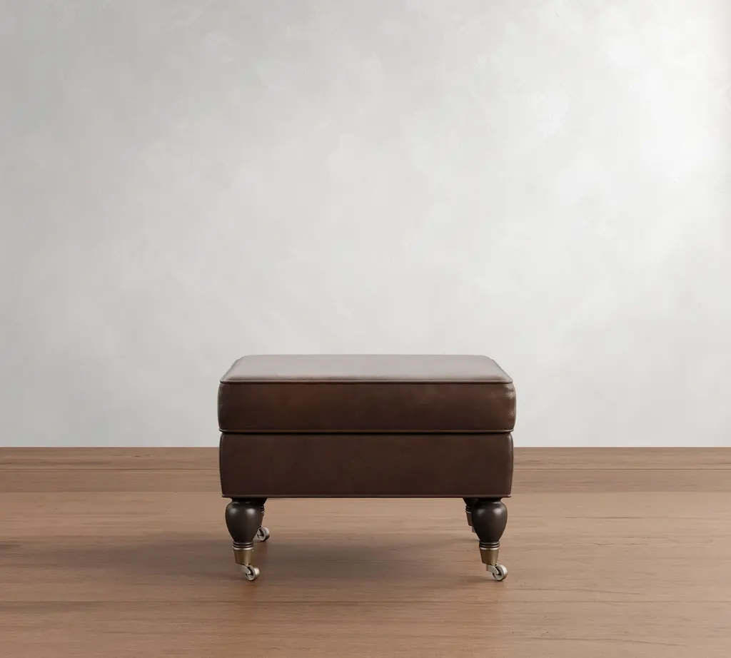 Built with sink-in comfort and impeccable style, our Brooklyn Leather Collection evokes the Edwardian furniture of the 1900s. The pleated roll arms are outlined with nailheads, while the scooped arms maximize legroom and define its signature profile. Available in a choice of leathers, this ottoman pairs beautifully with the matching armchair and sofa and makes it easy to tailor your seating to suit your look.