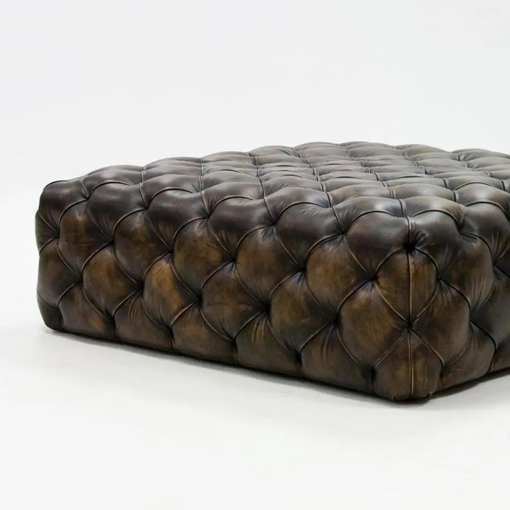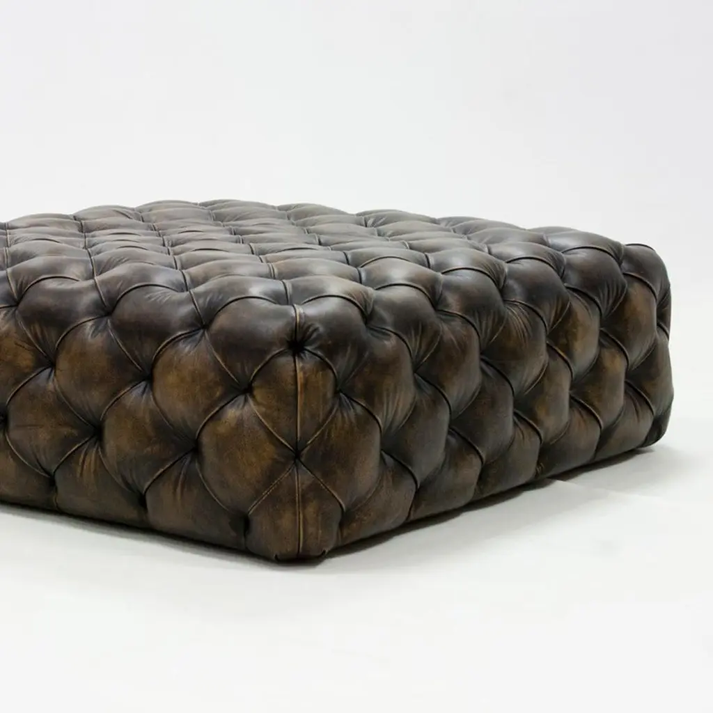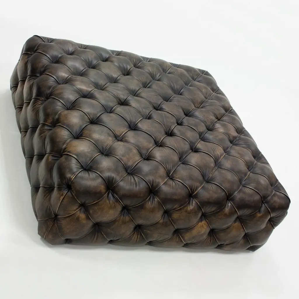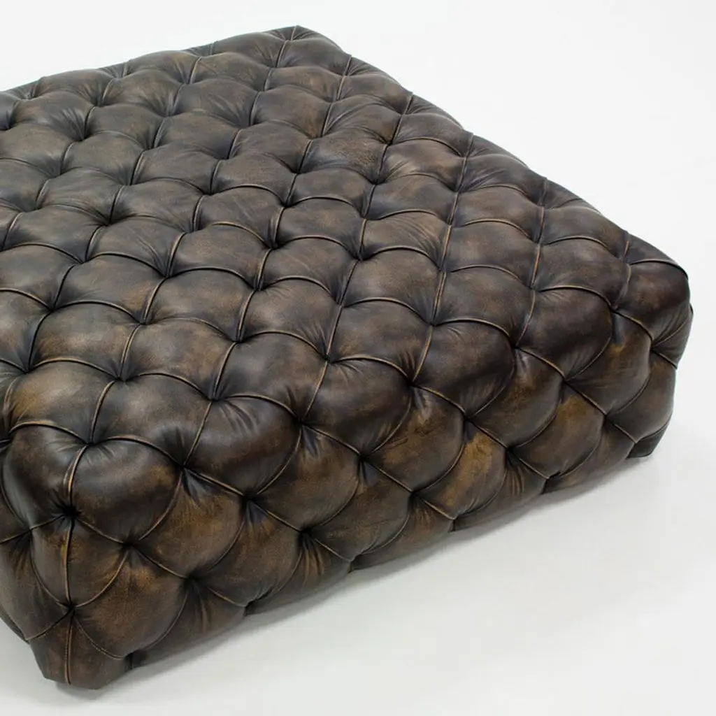 Ottoman browny leather with solidwood structure upholstered and coveredwith capitonated natural genuine brown leather.Not button capitonated.Also available with other fabric colors on request.