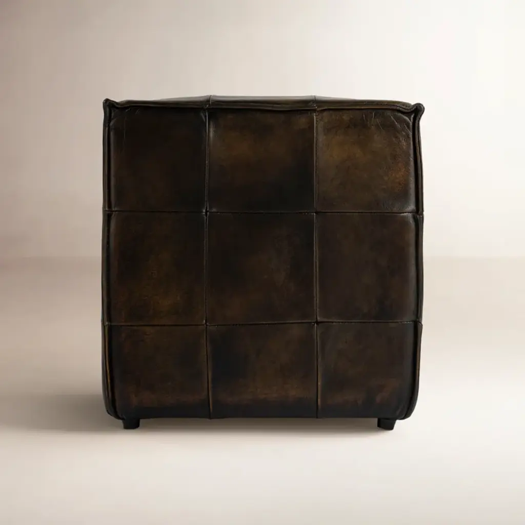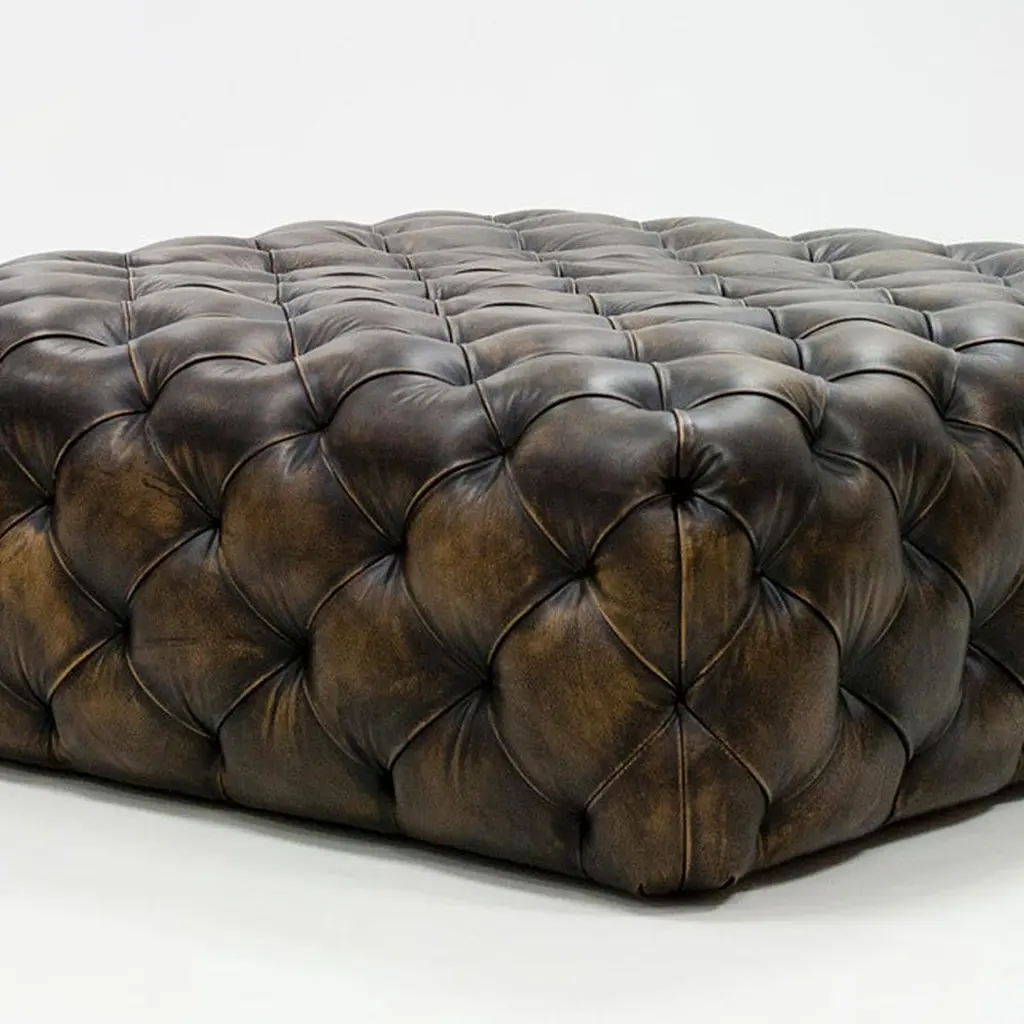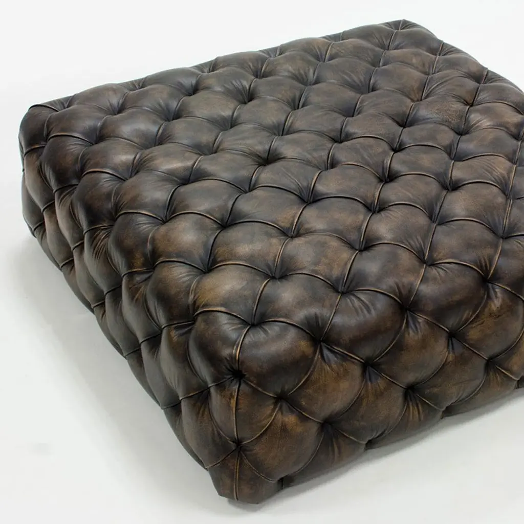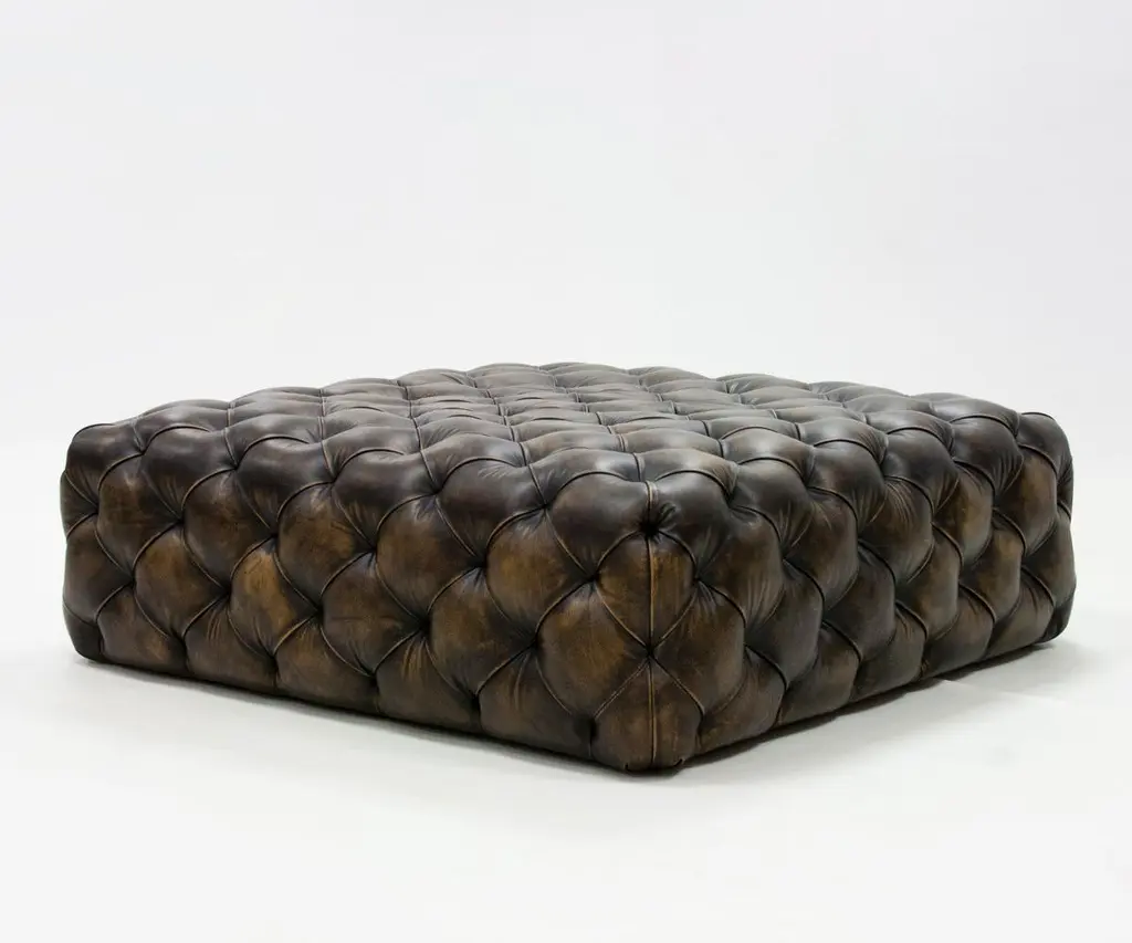 Ottoman browny leather with solidwood structure upholstered and coveredwith capitonated natural genuine brown leather.Not button capitonated.Also available with other fabric colors on request.