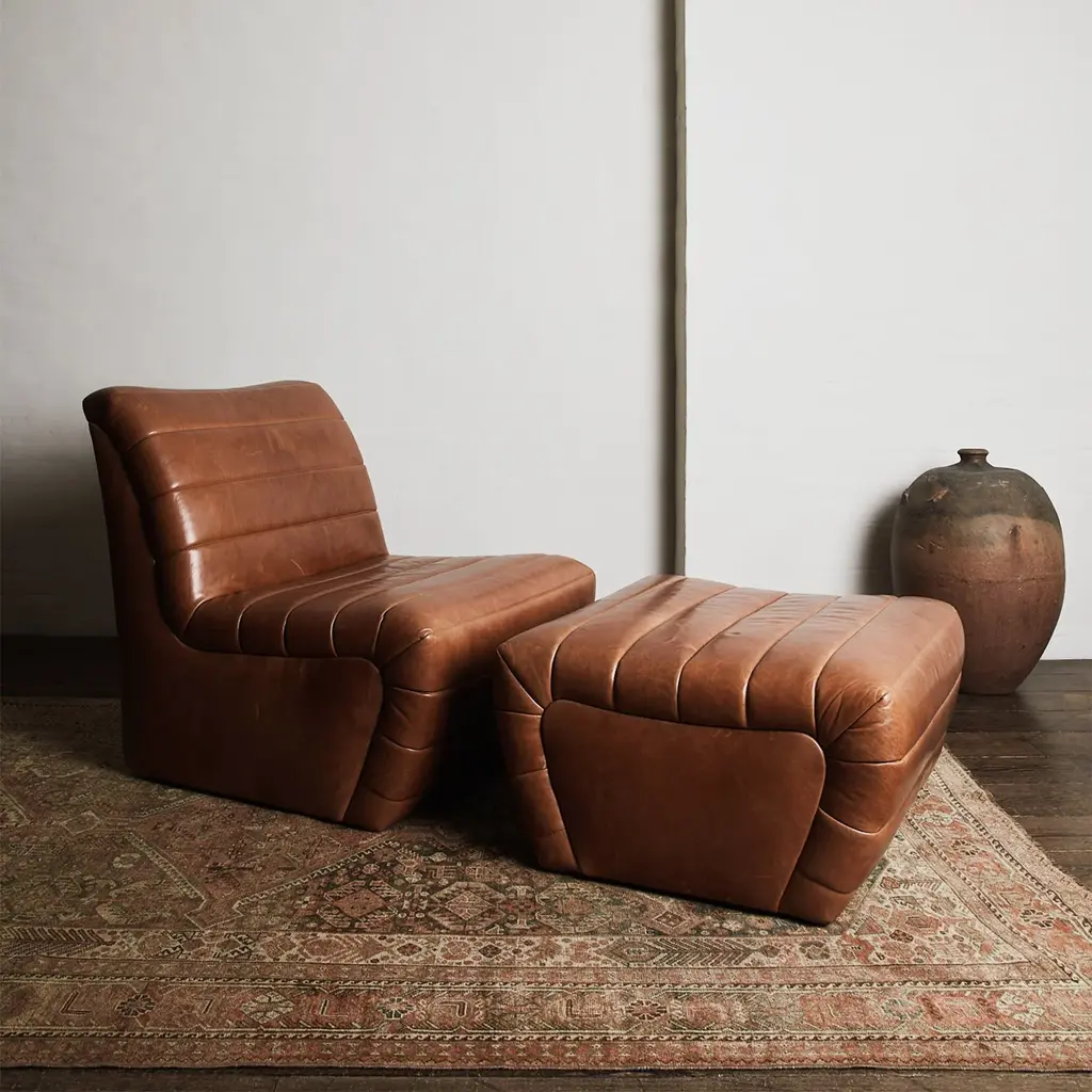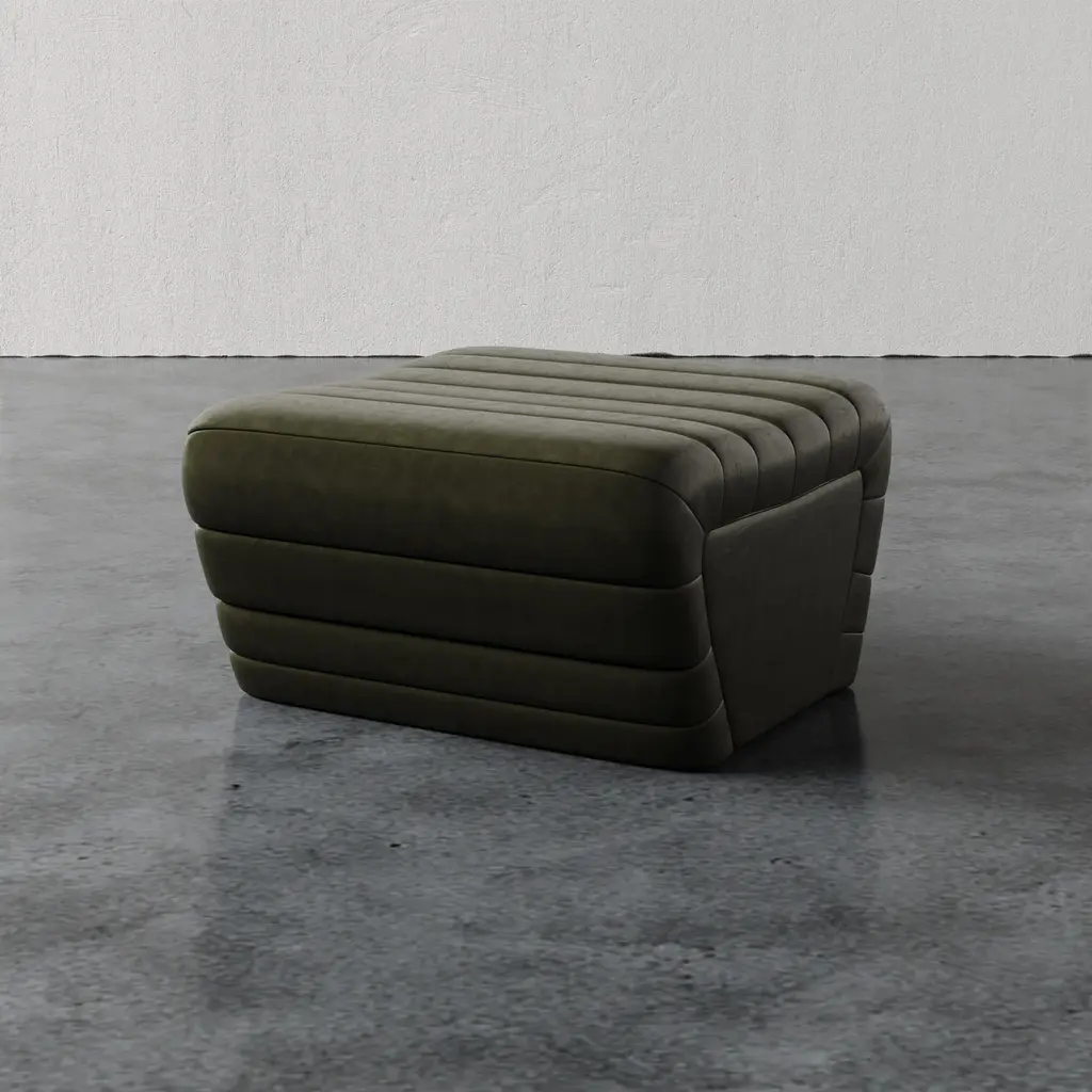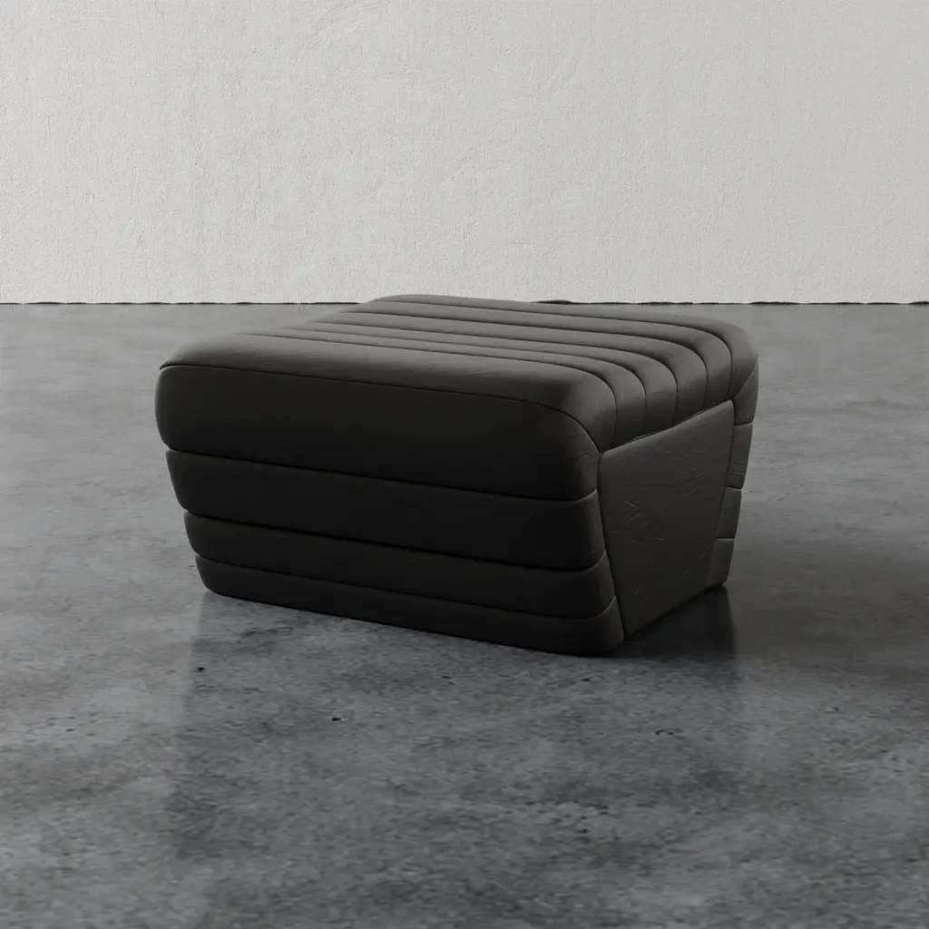 The Brunoy ottoman is inspired by midcentury Swiss design, reworked with a modernist perspective and upholstered with cleanly tailored horizontal channeling. Pair with the Brunoy lounge chair for the ultimate in comfort. Available in both Leather and Fabrics.The Brunoy Ottoman is handmade by skilled artisans in North Carolina.