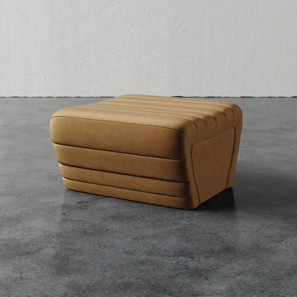 The Brunoy ottoman is inspired by midcentury Swiss design, reworked with a modernist perspective and upholstered with cleanly tailored horizontal channeling. Pair with the Brunoy lounge chair for the ultimate in comfort. Available in both Leather and Fabrics.The Brunoy Ottoman is handmade by skilled artisans in North Carolina.