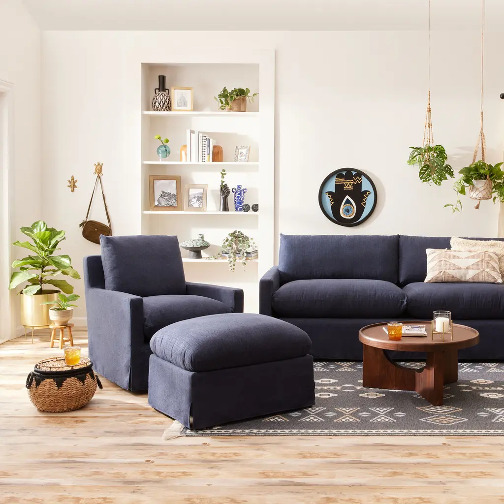The heavenly softness of a down pillow meets the lasting durability of stain-resistant performance fabric in our Brynn feather-filled ottoman. A custom-made footstool to pair with our iconic Brynn swivel chair, it's available in the same color of upholstery to ensure a perfect match. With its large rectangular profile and feather-filled fixed cushion, this down ottoman also works as a plush standalone seat in any setting.