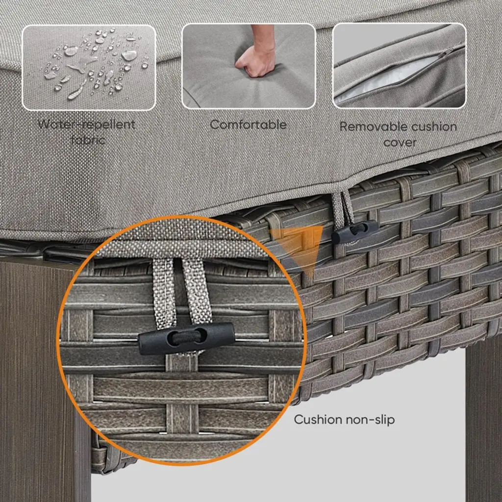 Buenhomino 5Pc Outdoor Patio Conversation Set With Ottoman,gray Cushion Gray Wicker