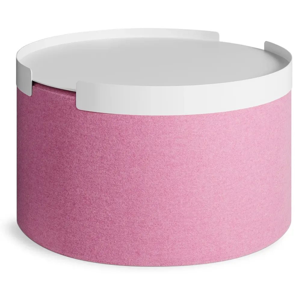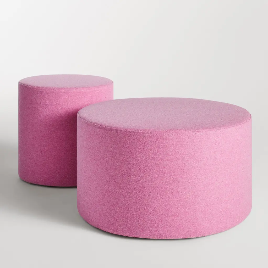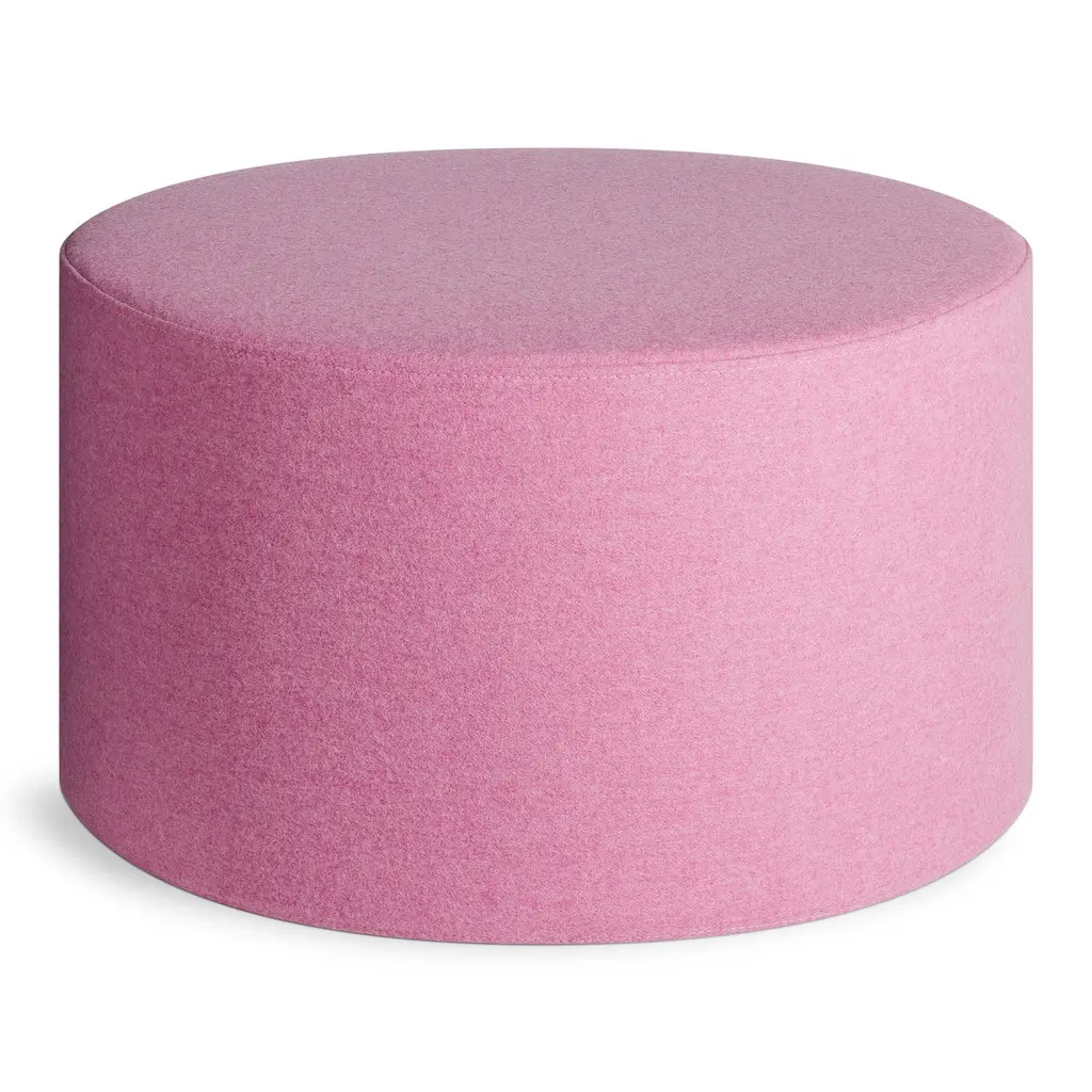 Playful geometry gets to work. Use as side table, foot stool, flexible seating, or an impromptu stage. Soft felted wool blend upholstery is available in boatloads of colors. Top this large round ottoman off with the powder-coated aluminum Bumper Large Ottoman Tray for a more stable and spill-friendly surface.