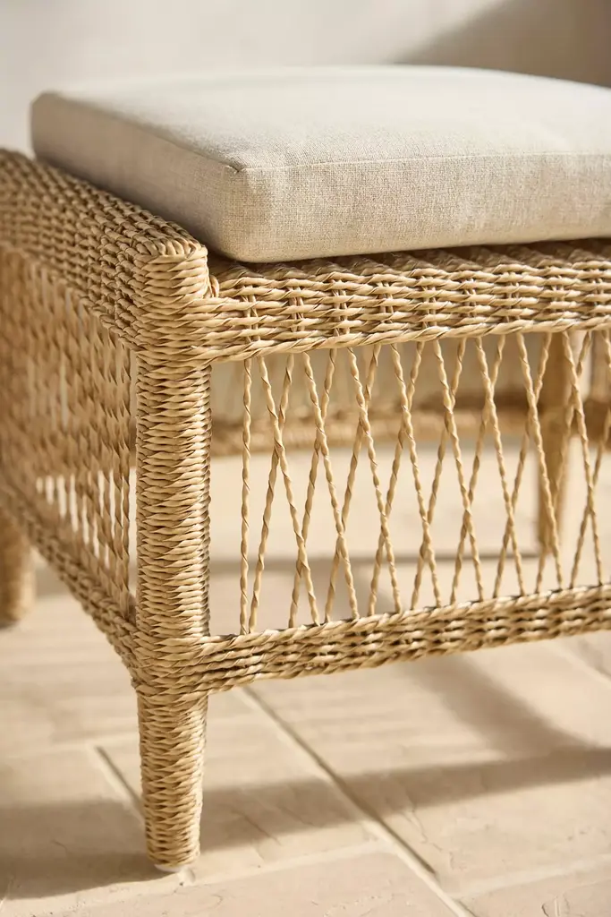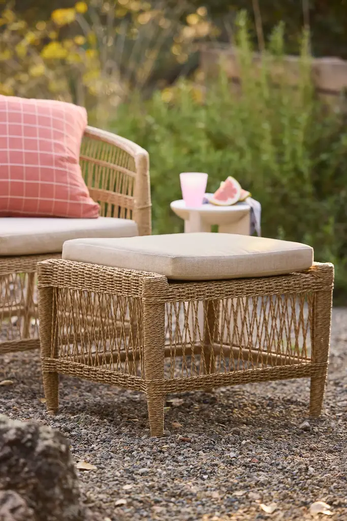 One of the first of its kind, our Cabana Ottoman is the latest in the Cabana lounge collection. Crafted from outdoor-ready materials that look at home both in the living room or on the patio. The weather-proof PE is elegantly woven around a durable aluminum frame. Outdoor cushion included.