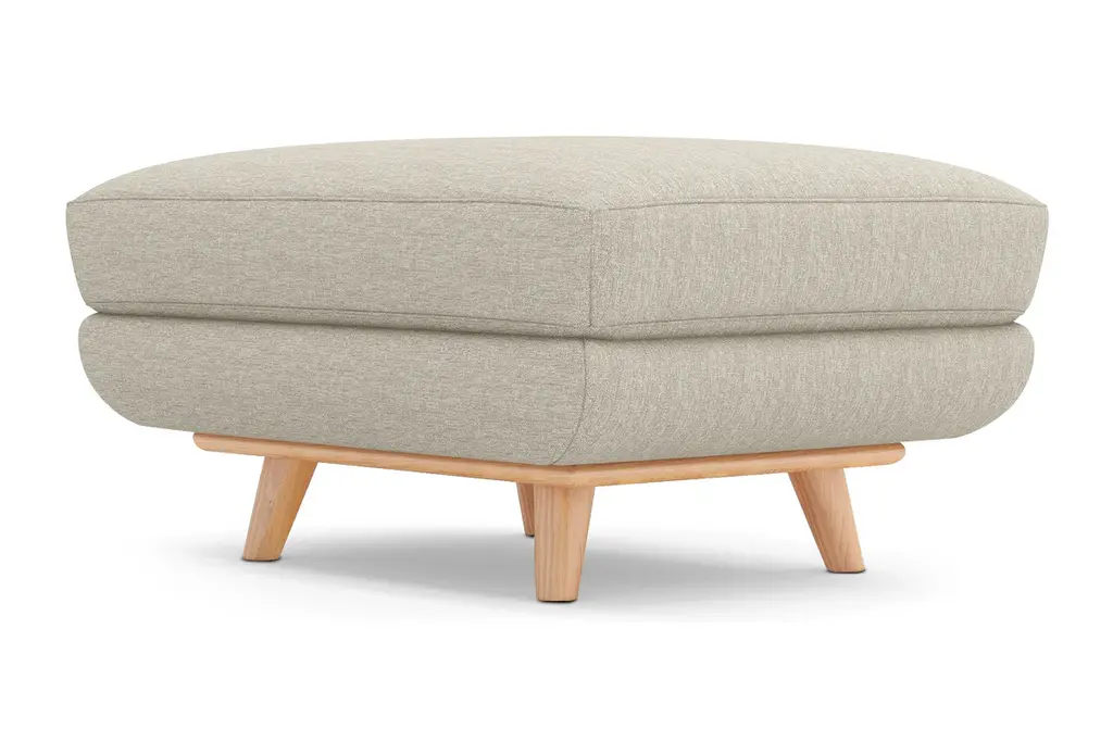 While the Carson Ottoman is designed to perfectly match our Carson Collection, pair it with your existing seating for a more eclectic vibe. Carson can be upholstered in a wide variety of soft, textured poly-blend fabrics, in a handful of sizes and with your choice of three wooden leg finishes. Made in the USA!