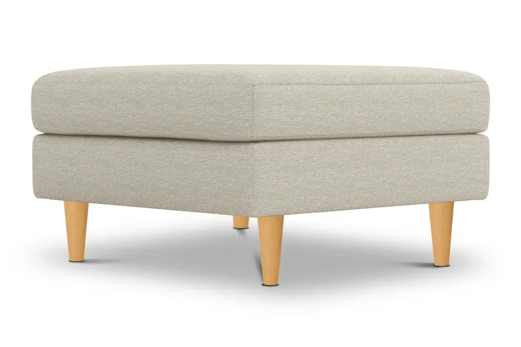 While the Carson Ottoman is designed to perfectly match our Carson Collection, pair it with your existing seating for a more eclectic vibe. Carson can be upholstered in a wide variety of soft, textured poly-blend fabrics, in a handful of sizes and with your choice of three wooden leg finishes. Made in the USA!