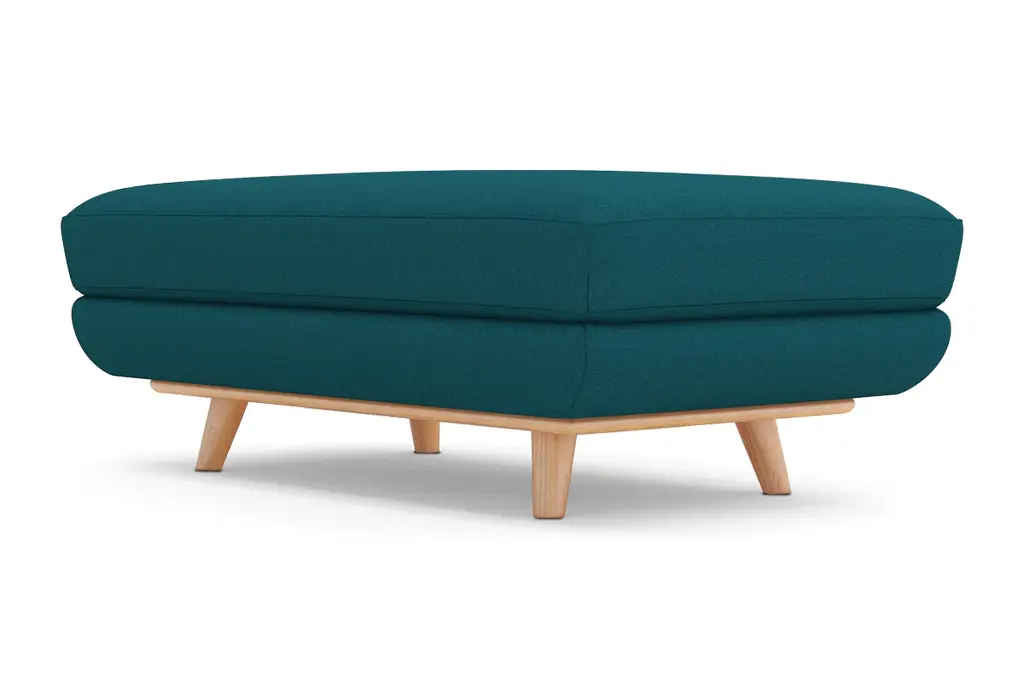 While the Carson Ottoman is designed to perfectly match our Carson Collection, pair it with your existing seating for a more eclectic vibe. Carson can be upholstered in a wide variety of soft, textured poly-blend fabrics, in a handful of sizes and with your choice of three wooden leg finishes. Made in the USA!