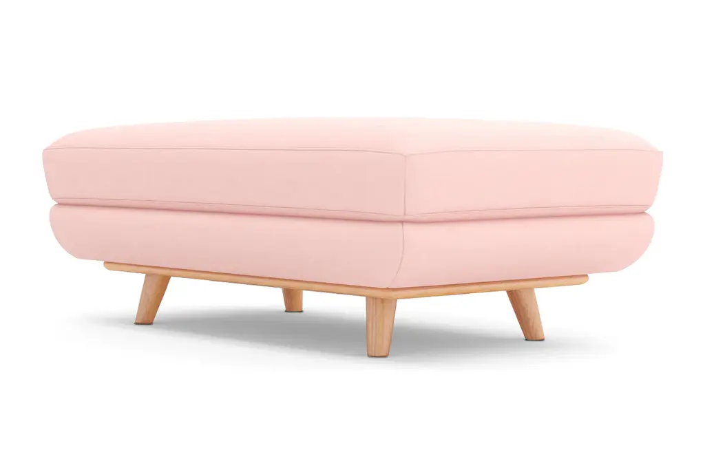 While the Carson Ottoman is designed to perfectly match our Carson Collection, pair it with your existing seating for a more eclectic vibe. Carson can be upholstered in a wide variety of soft, textured poly-blend fabrics, in a handful of sizes and with your choice of three wooden leg finishes. Made in the USA!