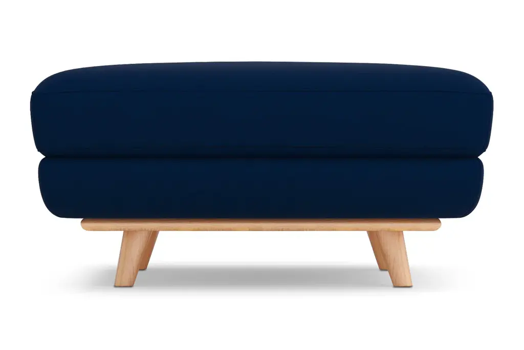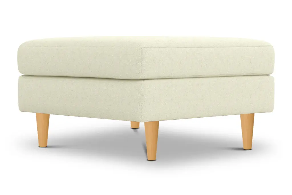 While the Carson Ottoman is designed to perfectly match our Carson Collection, pair it with your existing seating for a more eclectic vibe. Carson can be upholstered in a wide variety of soft, textured poly-blend fabrics, in a handful of sizes and with your choice of three wooden leg finishes. Made in the USA!