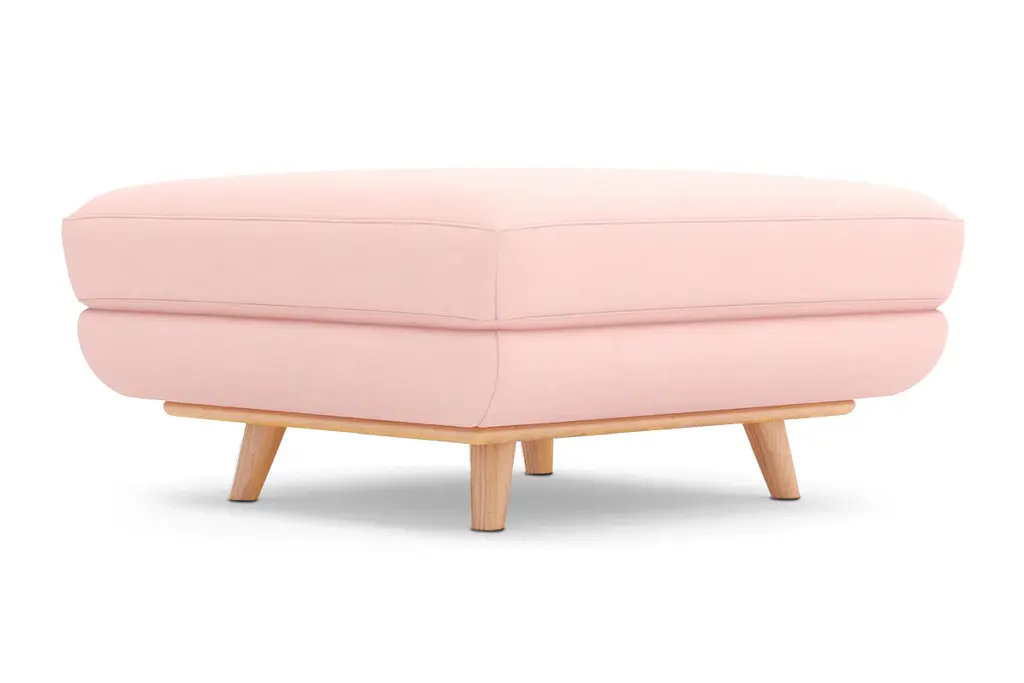 While the Carson Ottoman is designed to perfectly match our Carson Collection, pair it with your existing seating for a more eclectic vibe. Carson can be upholstered in a wide variety of soft, textured poly-blend fabrics, in a handful of sizes and with your choice of three wooden leg finishes. Made in the USA!