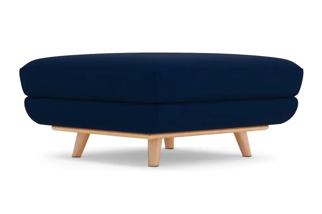 While the Carson Ottoman is designed to perfectly match our Carson Collection, pair it with your existing seating for a more eclectic vibe. Carson can be upholstered in a wide variety of soft, textured poly-blend fabrics, in a handful of sizes and with your choice of three wooden leg finishes. Made in the USA!