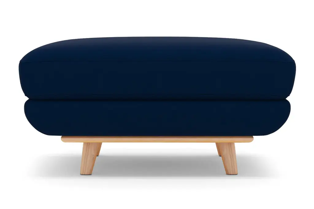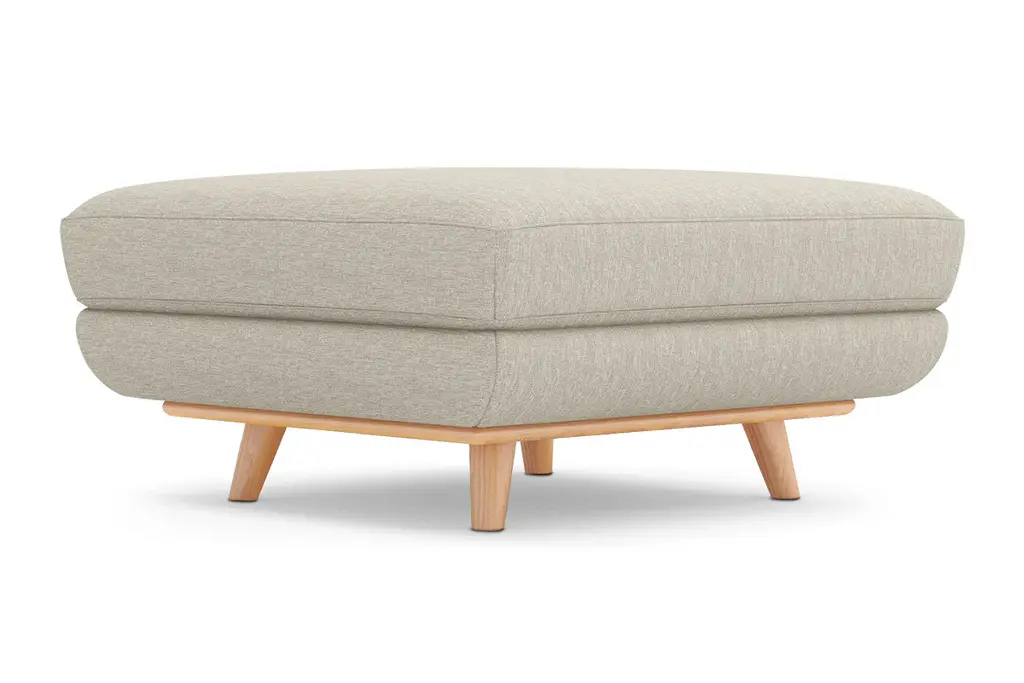 While the Carson Ottoman is designed to perfectly match our Carson Collection, pair it with your existing seating for a more eclectic vibe. Carson can be upholstered in a wide variety of soft, textured poly-blend fabrics, in a handful of sizes and with your choice of three wooden leg finishes. Made in the USA!