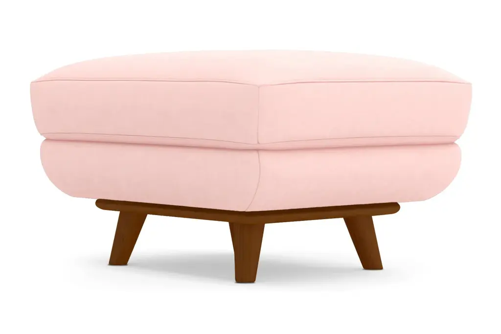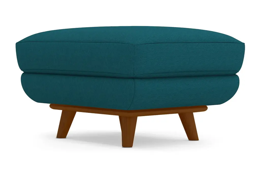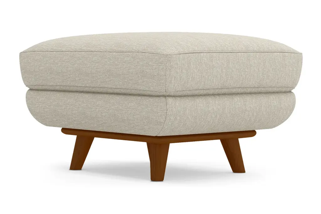 While the Carson Ottoman is designed to perfectly match our Carson Collection, pair it with your existing seating for a more eclectic vibe. Carson can be upholstered in a wide variety of soft, textured poly-blend fabrics, in a handful of sizes and with your choice of three wooden leg finishes. Made in the USA!
