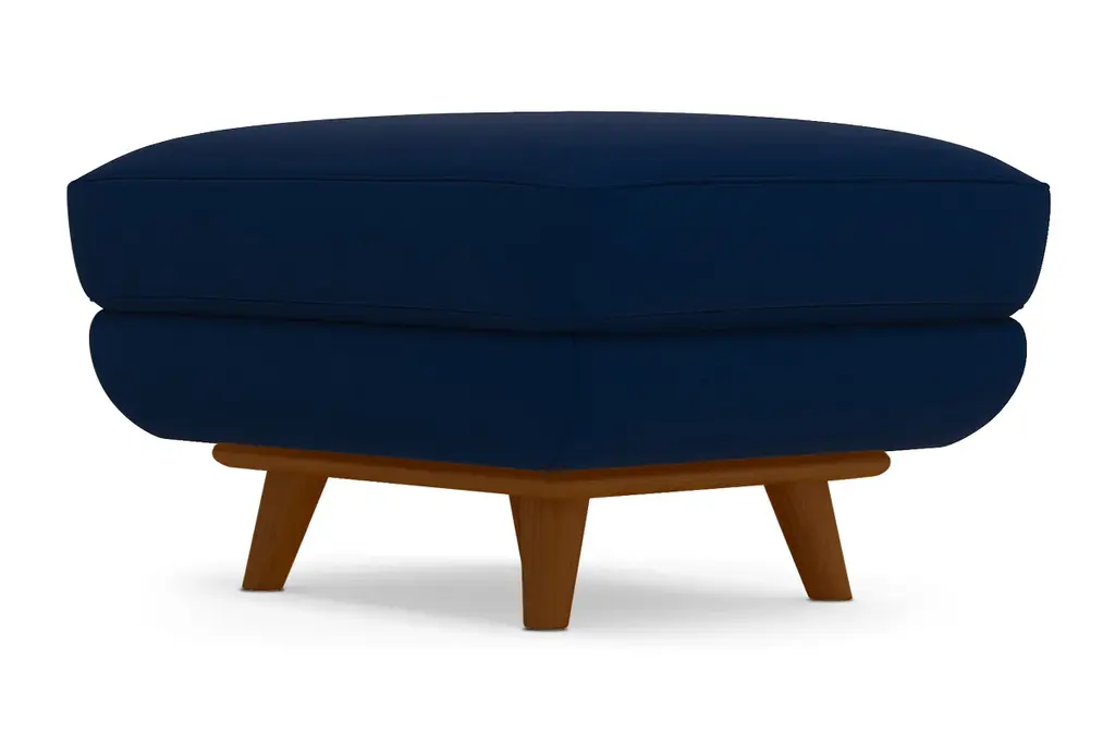 While the Carson Ottoman is designed to perfectly match our Carson Collection, pair it with your existing seating for a more eclectic vibe. Carson can be upholstered in a wide variety of soft, textured poly-blend fabrics, in a handful of sizes and with your choice of three wooden leg finishes. Made in the USA!