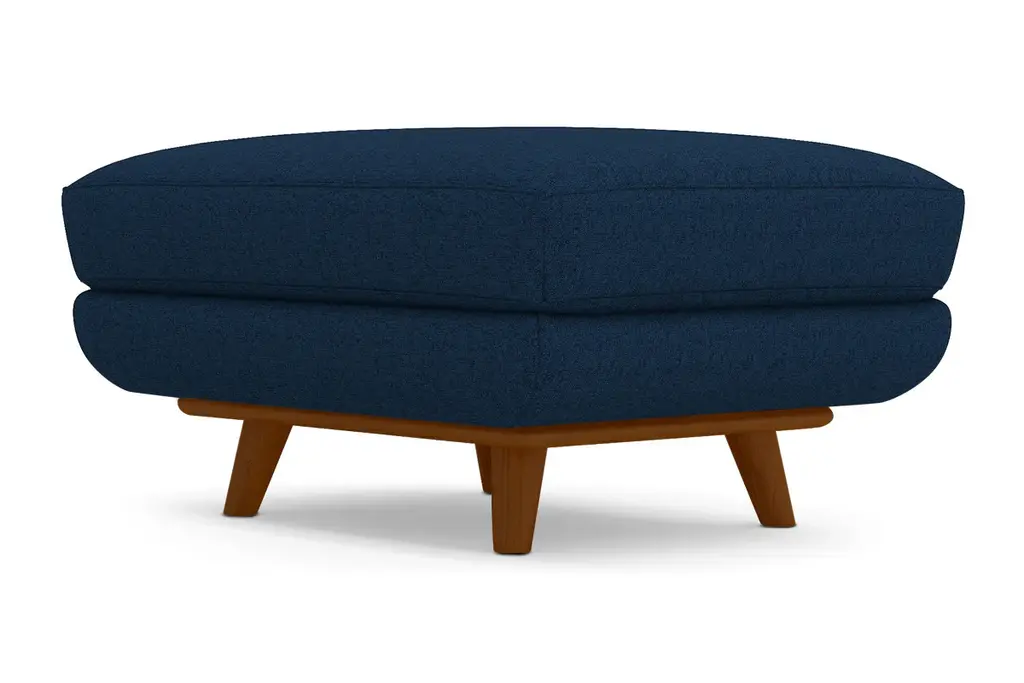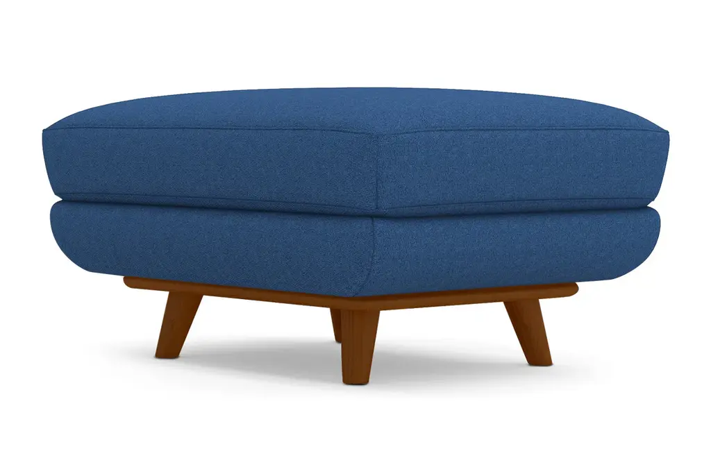 While the Carson Ottoman is designed to perfectly match our Carson Collection, pair it with your existing seating for a more eclectic vibe. Carson can be upholstered in a wide variety of soft, textured poly-blend fabrics, in a handful of sizes and with your choice of three wooden leg finishes. Made in the USA!