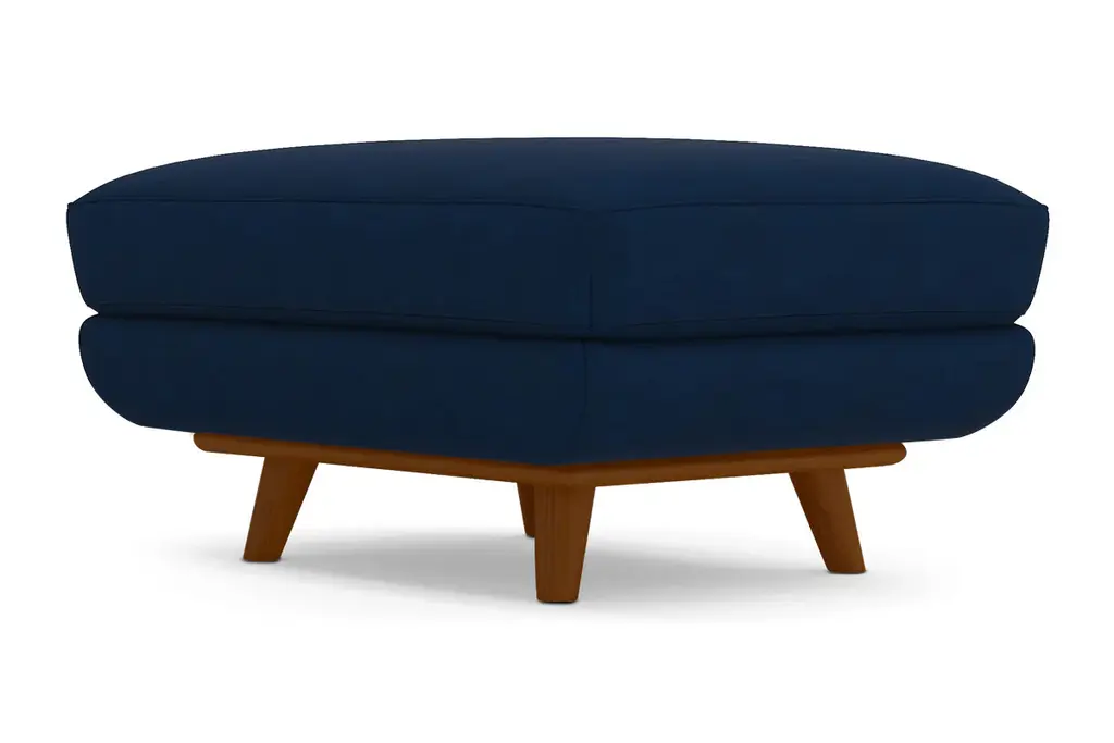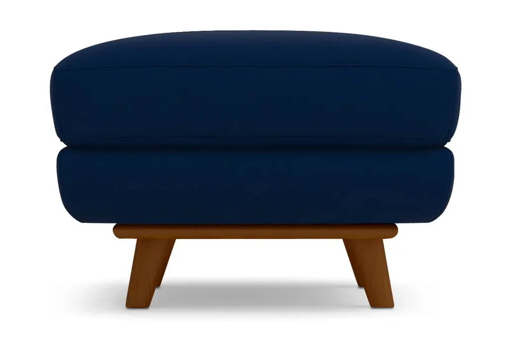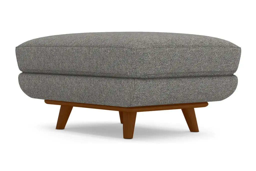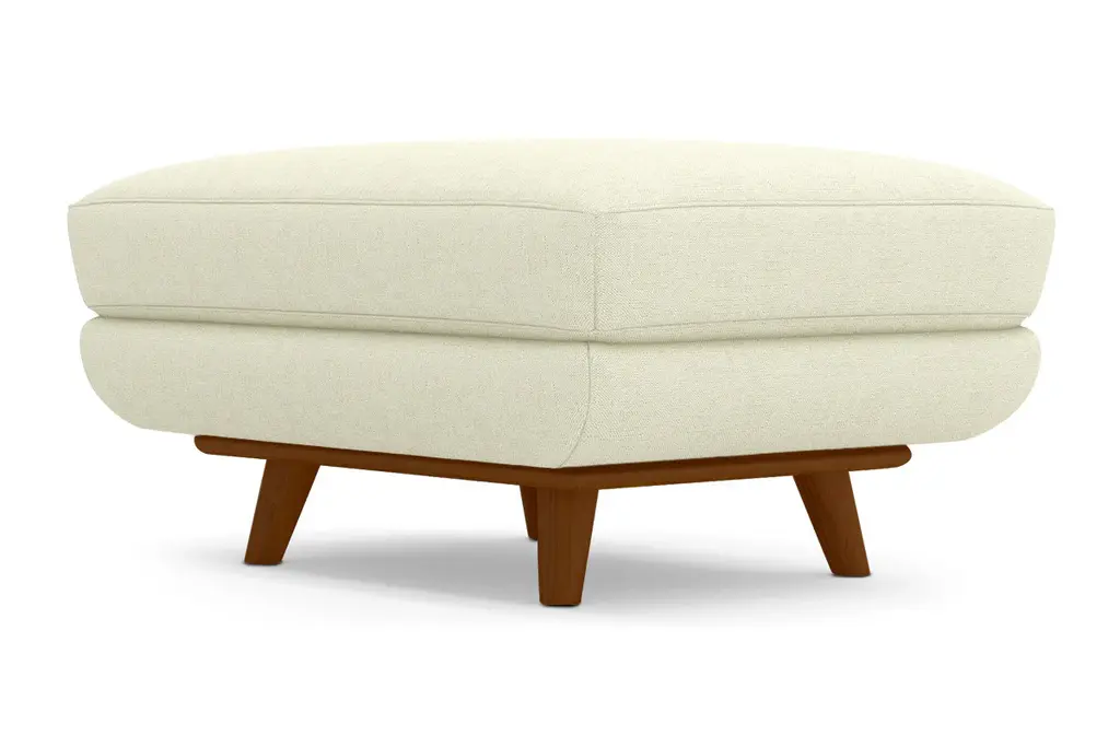 While the Carson Ottoman is designed to perfectly match our Carson Collection, pair it with your existing seating for a more eclectic vibe. Carson can be upholstered in a wide variety of soft, textured poly-blend fabrics, in a handful of sizes and with your choice of three wooden leg finishes. Made in the USA!