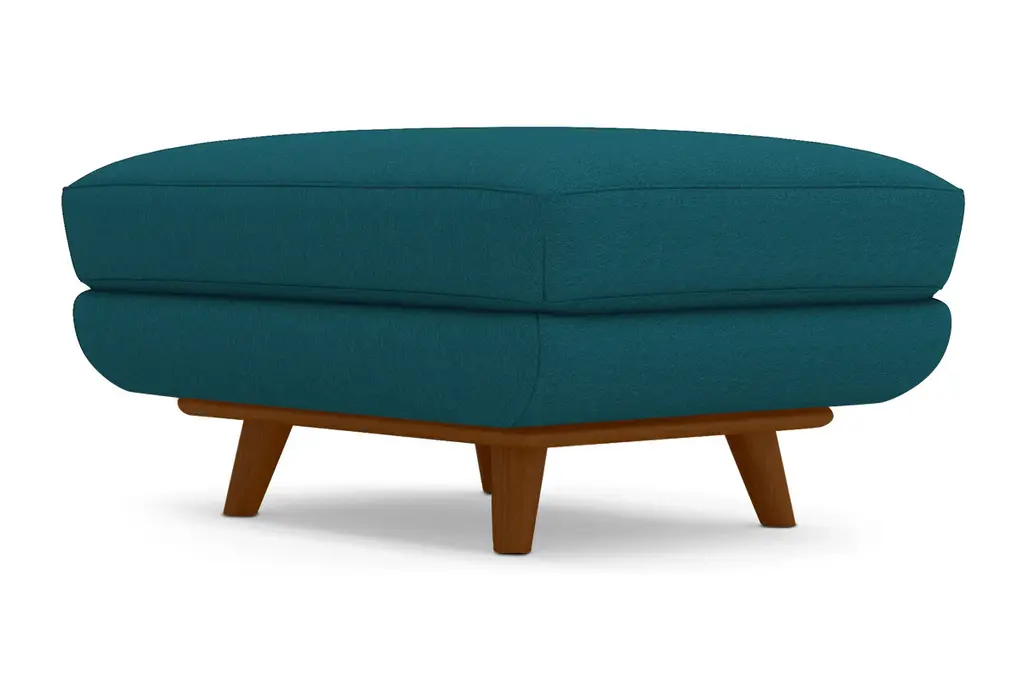While the Carson Ottoman is designed to perfectly match our Carson Collection, pair it with your existing seating for a more eclectic vibe. Carson can be upholstered in a wide variety of soft, textured poly-blend fabrics, in a handful of sizes and with your choice of three wooden leg finishes. Made in the USA!