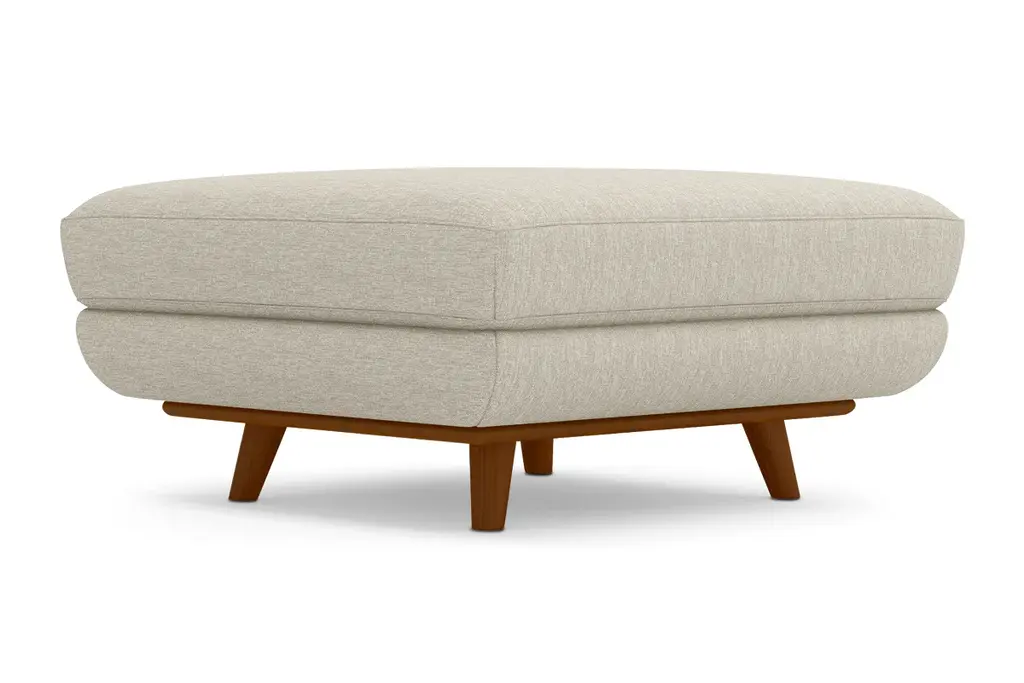 While the Carson Ottoman is designed to perfectly match our Carson Collection, pair it with your existing seating for a more eclectic vibe. Carson can be upholstered in a wide variety of soft, textured poly-blend fabrics, in a handful of sizes and with your choice of three wooden leg finishes. Made in the USA!