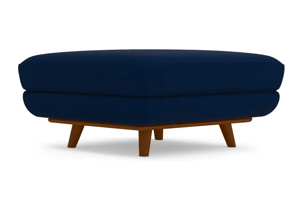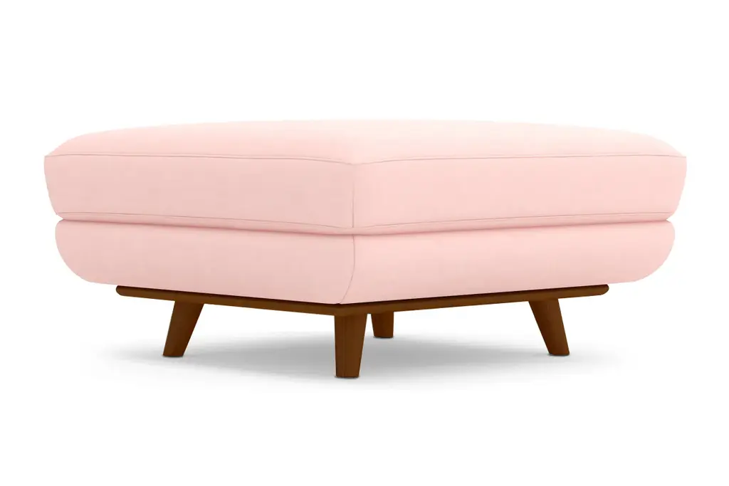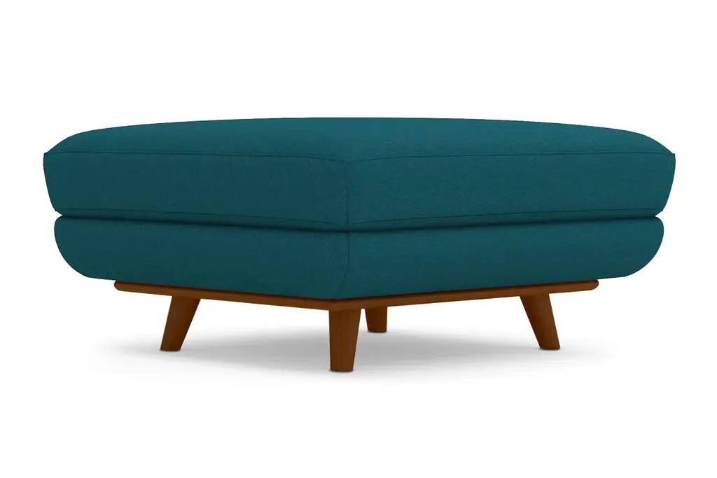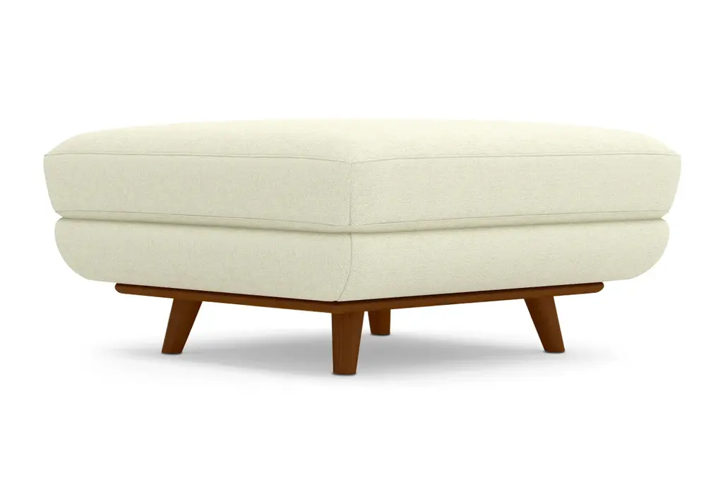 While the Carson Ottoman is designed to perfectly match our Carson Collection, pair it with your existing seating for a more eclectic vibe. Carson can be upholstered in a wide variety of soft, textured poly-blend fabrics, in a handful of sizes and with your choice of three wooden leg finishes. Made in the USA!