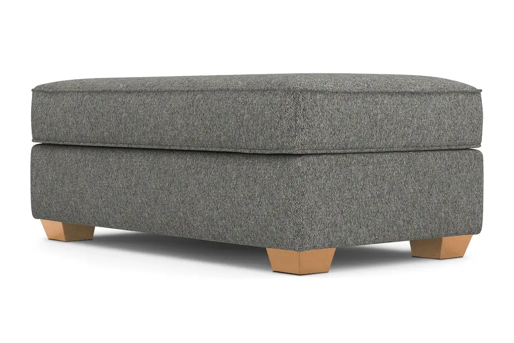 While the Catalina Ottoman is designed to perfectly match our Catalina Collection, pair it with your existing seating for a more eclectic vibe. Catalina can be upholstered in a wide variety of soft, textured poly-blend fabrics, in a handful of sizes and with your choice of three wooden leg finishes. Made in the USA!