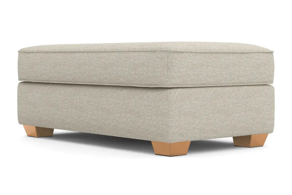 While the Catalina Ottoman is designed to perfectly match our Catalina Collection, pair it with your existing seating for a more eclectic vibe. Catalina can be upholstered in a wide variety of soft, textured poly-blend fabrics, in a handful of sizes and with your choice of three wooden leg finishes. Made in the USA!