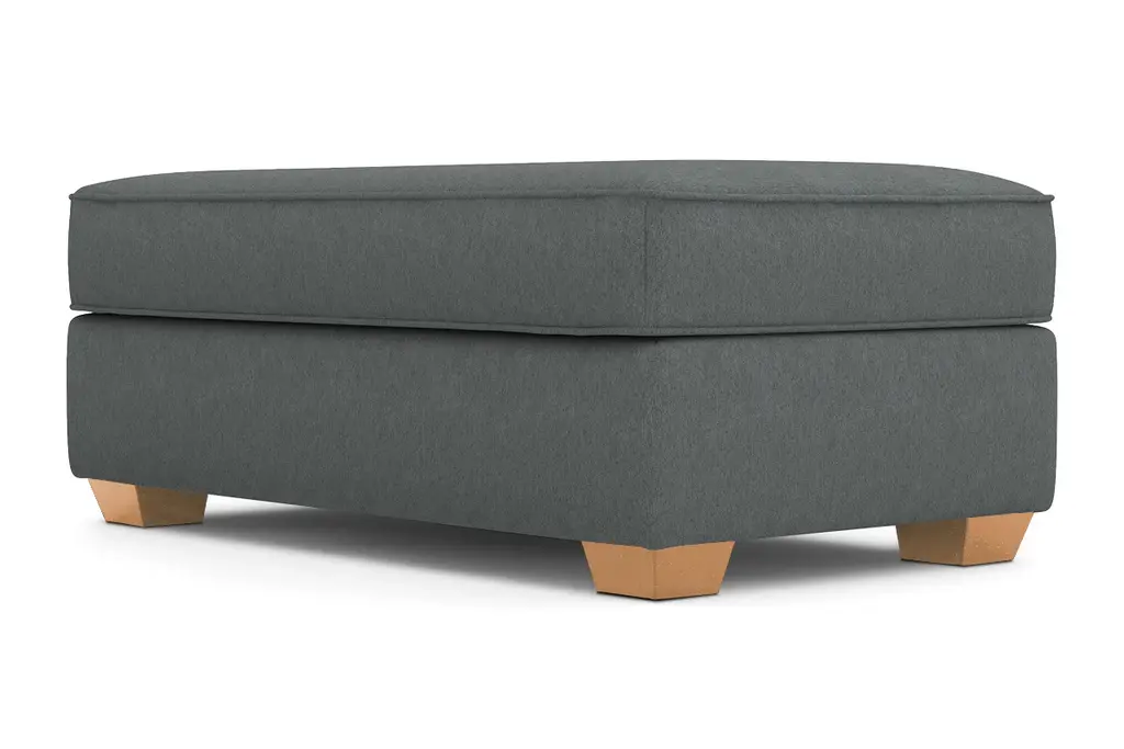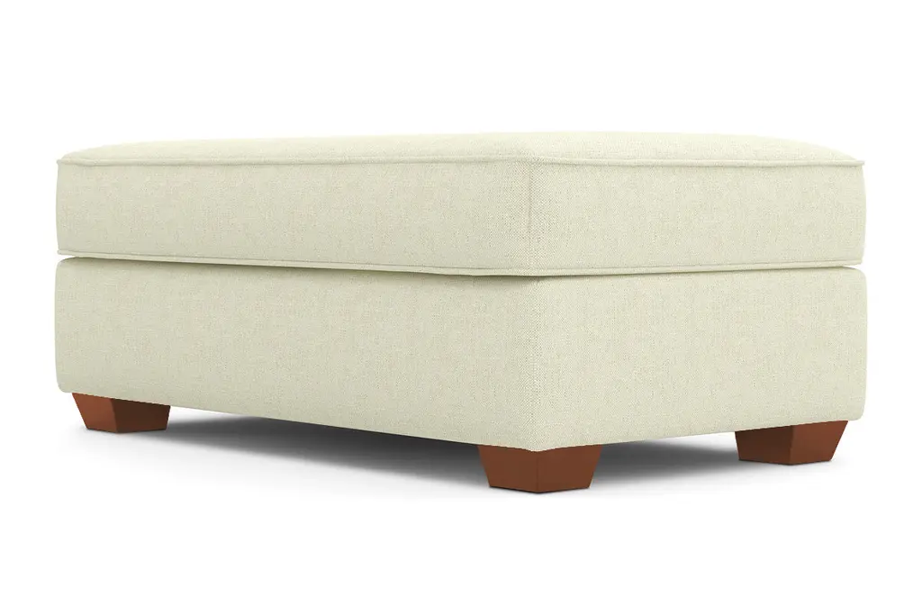 While the Catalina Ottoman is designed to perfectly match our Catalina Collection, pair it with your existing seating for a more eclectic vibe. Catalina can be upholstered in a wide variety of soft, textured poly-blend fabrics, in a handful of sizes and with your choice of three wooden leg finishes. Made in the USA!