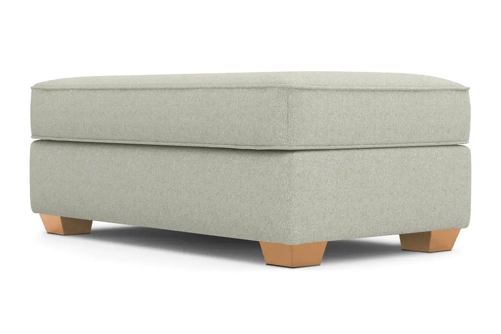 While the Catalina Ottoman is designed to perfectly match our Catalina Collection, pair it with your existing seating for a more eclectic vibe. Catalina can be upholstered in a wide variety of soft, textured poly-blend fabrics, in a handful of sizes and with your choice of three wooden leg finishes. Made in the USA!