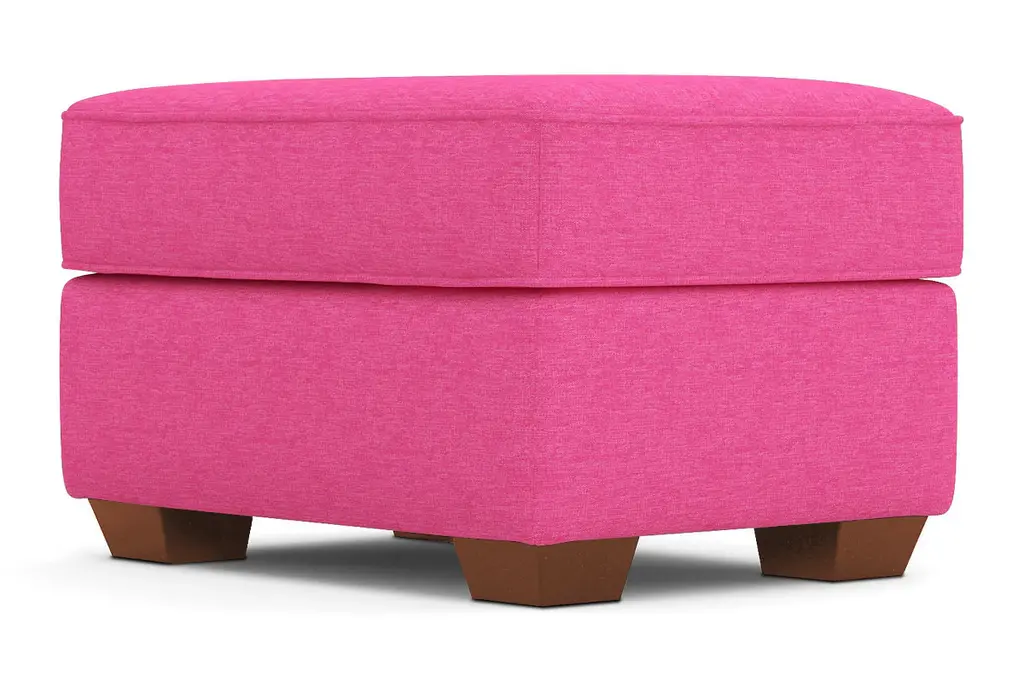 While the Catalina Ottoman is designed to perfectly match our Catalina Collection, pair it with your existing seating for a more eclectic vibe. Catalina can be upholstered in a wide variety of soft, textured poly-blend fabrics, in a handful of sizes and with your choice of three wooden leg finishes. Made in the USA!