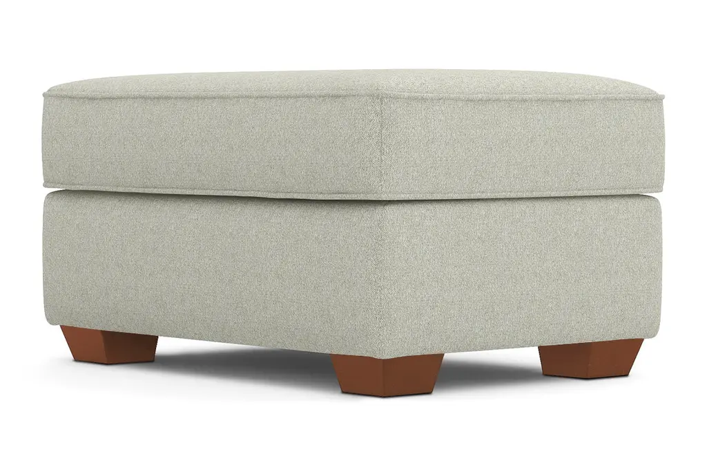 While the Catalina Ottoman is designed to perfectly match our Catalina Collection, pair it with your existing seating for a more eclectic vibe. Catalina can be upholstered in a wide variety of soft, textured poly-blend fabrics, in a handful of sizes and with your choice of three wooden leg finishes. Made in the USA!