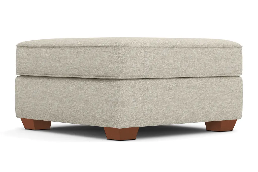While the Catalina Ottoman is designed to perfectly match our Catalina Collection, pair it with your existing seating for a more eclectic vibe. Catalina can be upholstered in a wide variety of soft, textured poly-blend fabrics, in a handful of sizes and with your choice of three wooden leg finishes. Made in the USA!