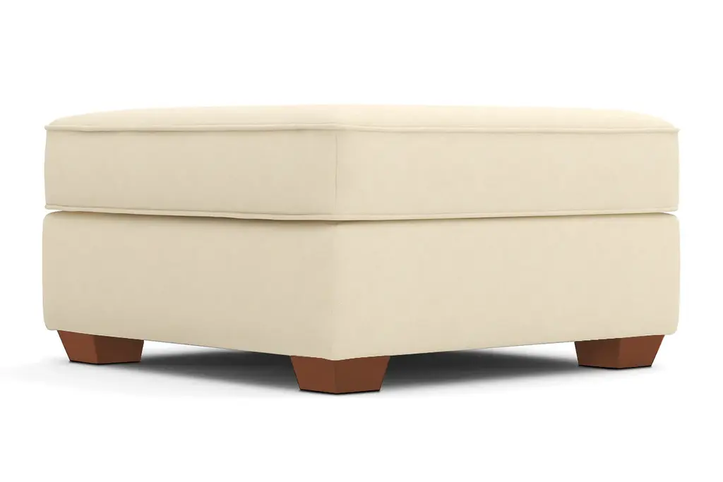 While the Catalina Ottoman is designed to perfectly match our Catalina Collection, pair it with your existing seating for a more eclectic vibe. Catalina can be upholstered in a wide variety of soft, textured poly-blend fabrics, in a handful of sizes and with your choice of three wooden leg finishes. Made in the USA!