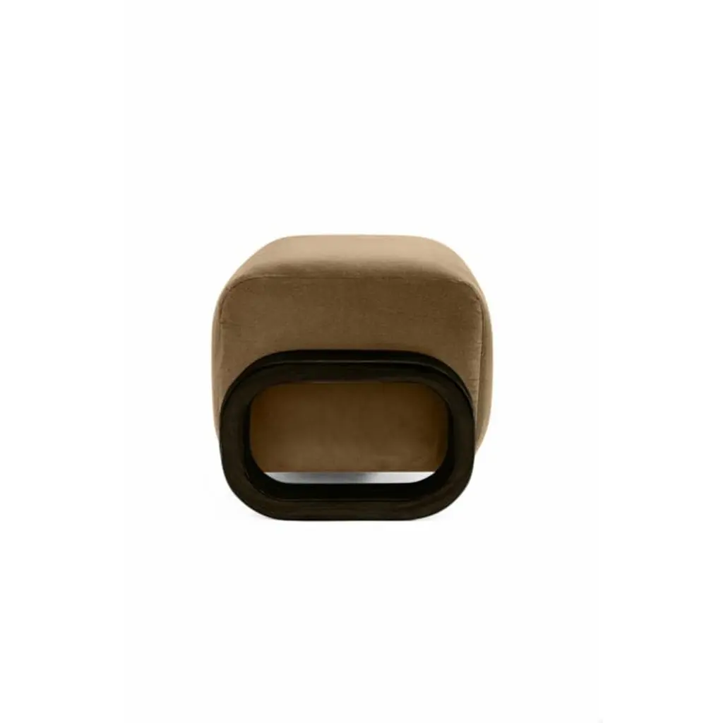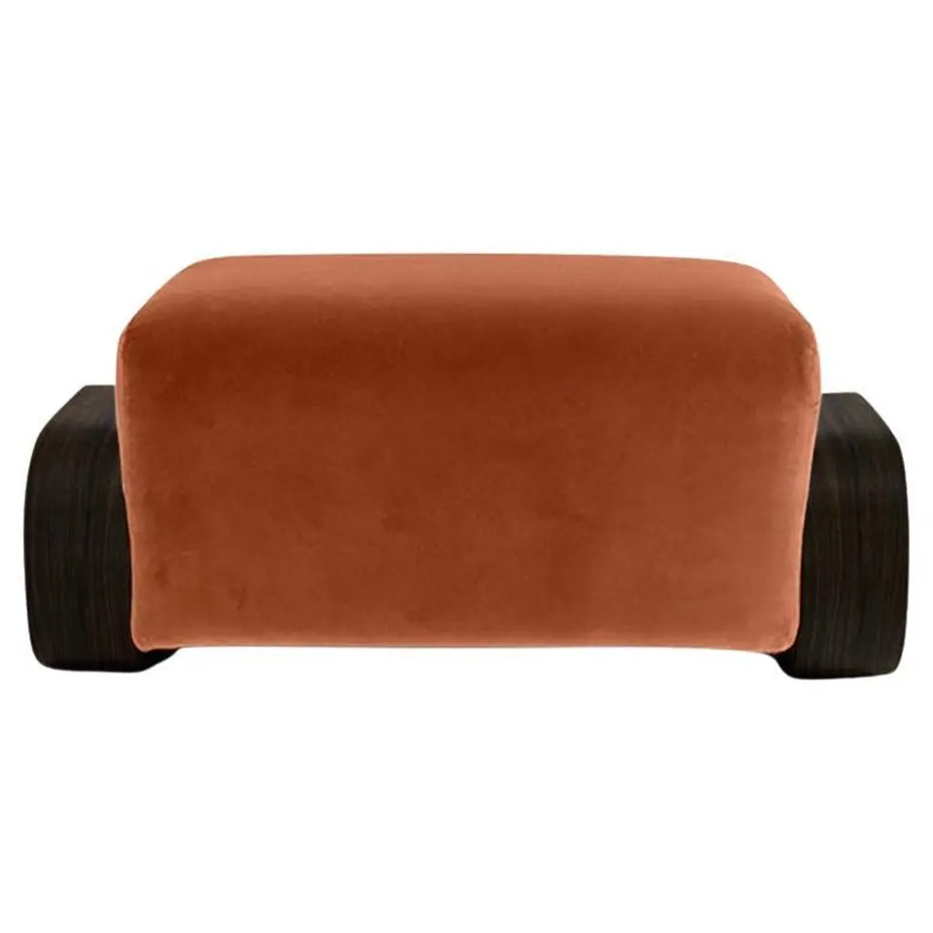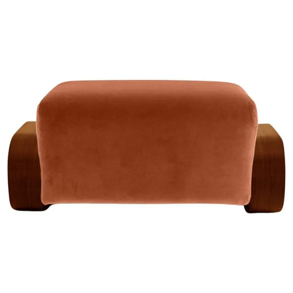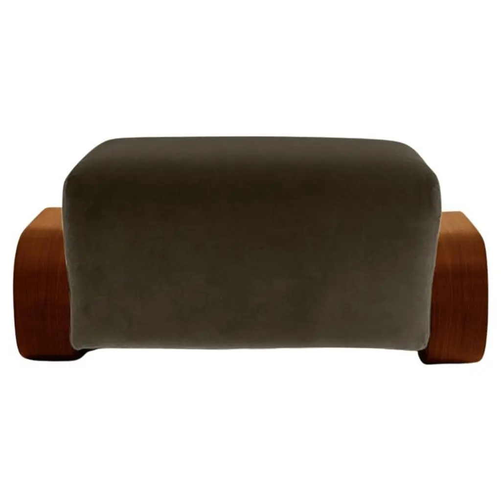 Cayenne Ottoman, Taupe Velvet / High Gloss Varnish Walnut