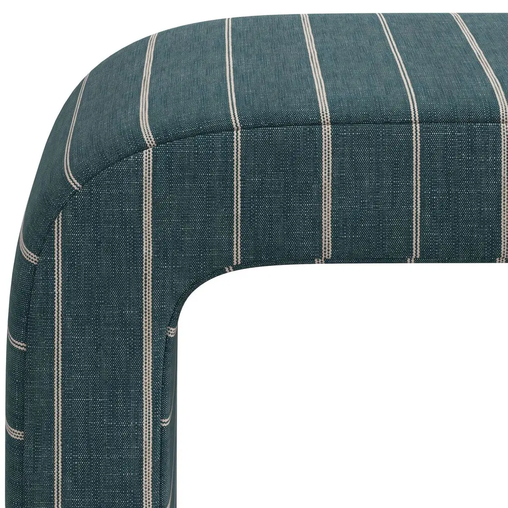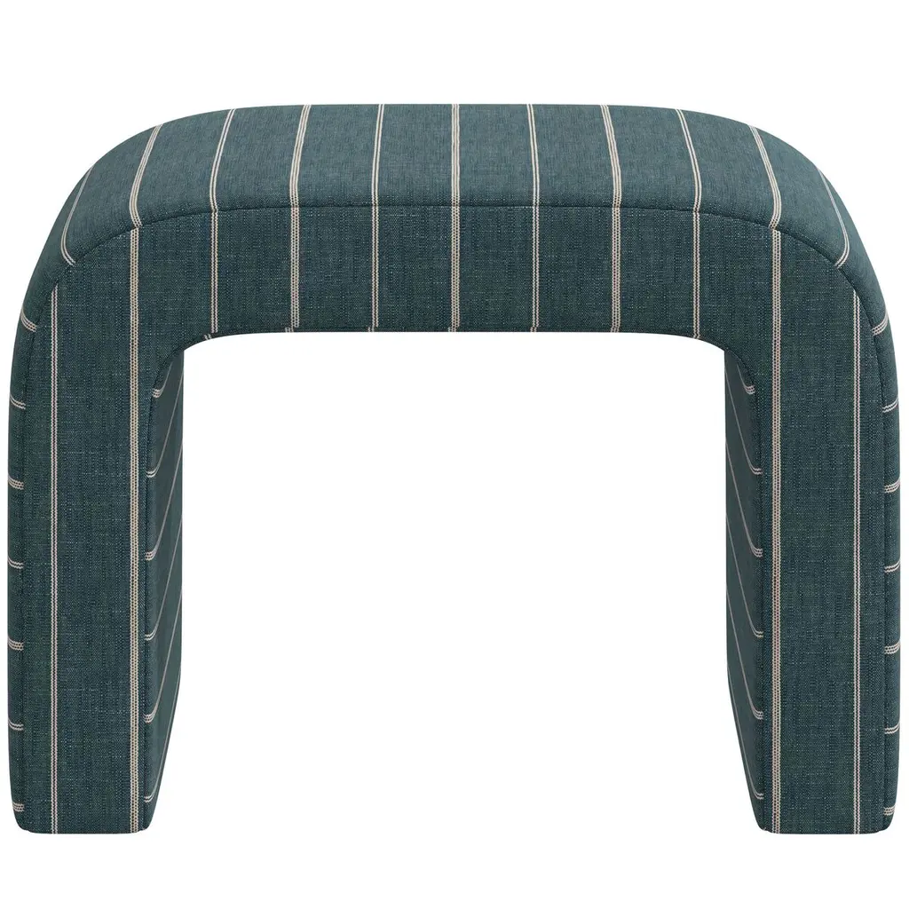 Made in the USA, this ottoman features rounded corners for a fresh contemporary vibe. Completely hand upholstered in a stunning striped cotton-linen-blend fabric, it excudes charm and sophistication. Whether you use it as a footrest, extra seating, or an occasional table, it will bring panache to its surroundings.