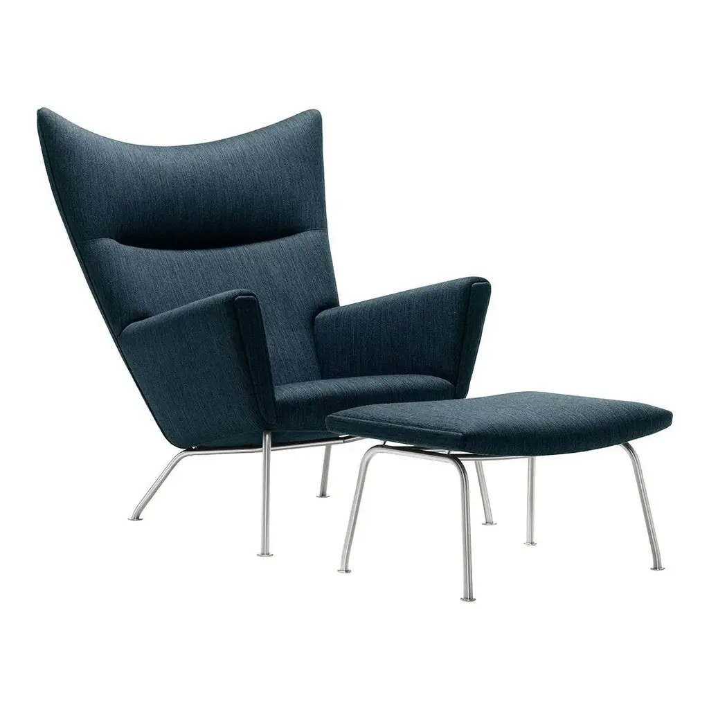 Back in 1960, Danish design legend Hans J. Wegner sketched an upholstered easy chair which saw only limited production. Now, Carl Hansen & Son, the Danish furniture maker, has dusted off the drawings to bring this contemporary classic back to life. The look of the Wingchair (CH_445) is unmistakably Hans J. Wegner. Like other of his best chairs, sculptural lines allow it to stand on its own in a variety of settings. Among Wegner's easy chairs, the Wingchair is notable for the serenity and harmony of its design. Its most characteristic visual features are the chair back's distinctive corner angle, shoulder groove and the upholstered armrests.