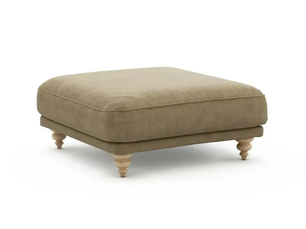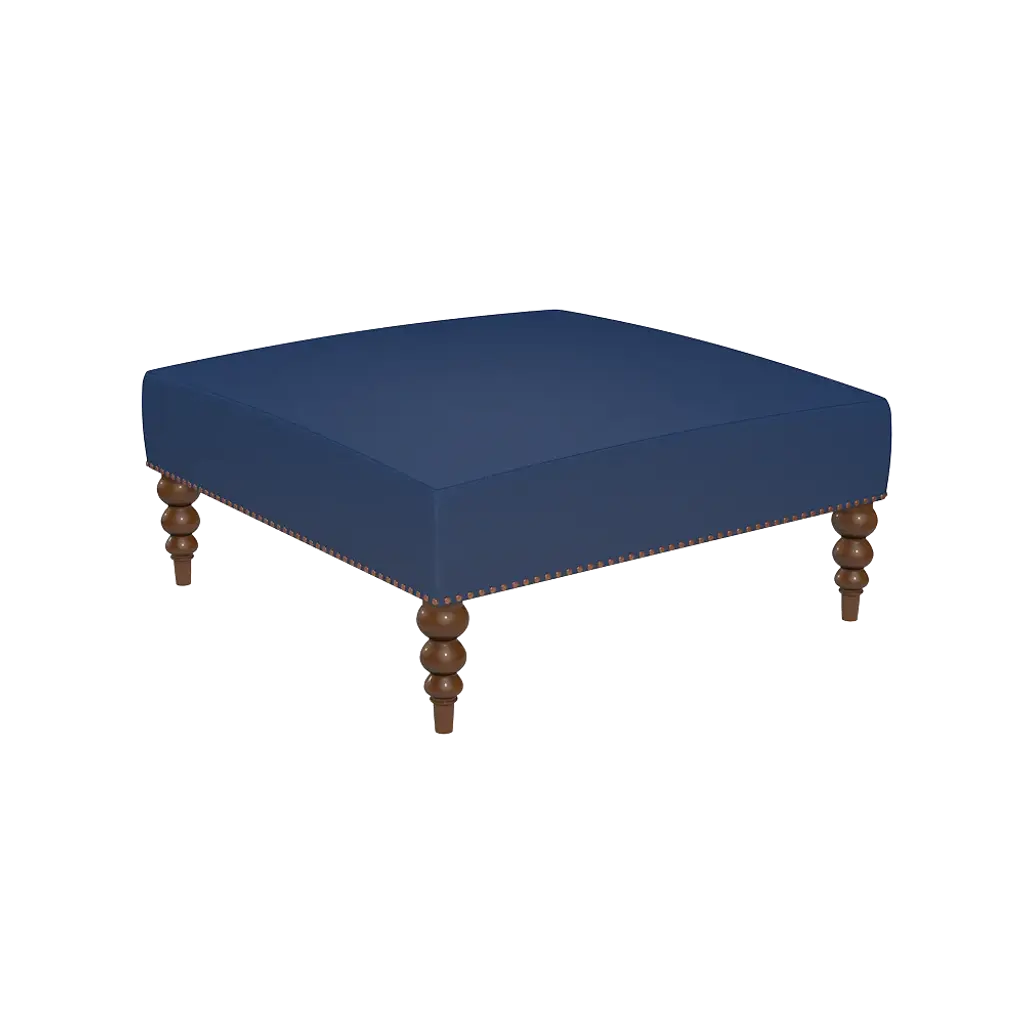 Dimensions: 46W x 46D x 19H Chic and casual. An ottoman is so versatile; country or city, living room or family room. It instantly softens the look of a room. Put your feet up on it, or style it like any other coffee table. Need something bigger or smaller? No worries, this can be customized to fit your space! Brass nailheads complete the fine look. PLEASE NOTE - this is a natural material. There will be variances in shade and texture throughout. Knots and fly always are part of the nature of this material and gives Natural Raffia its the beauty and character. ** Please Note, if using COM, production will not start until we receive your COM FORM Made in America